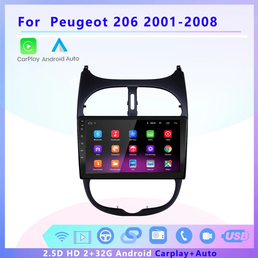 Автомагнитола 2 din, экран android, радио, автомобильный мультимедийный стереоплеер, беспроводной Carplay, Автомобильный GPS, Wi-Fi для Peugeot 206 2001-2008