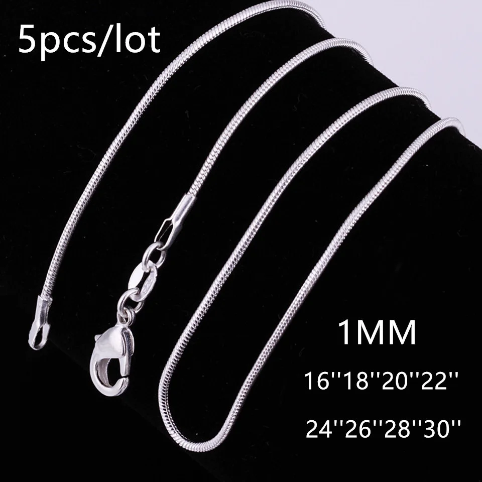 5 шт.лот оптовая продажа серебряного цвета застежка-лобстер 1 мм змеиная цепочка 18-22 дюйма ожерелье Женская Базовая цепочка сделай сам