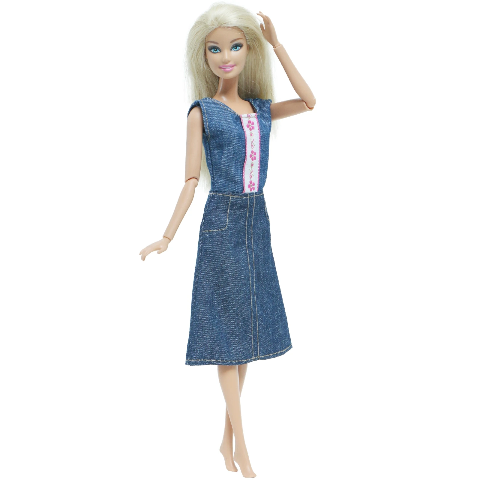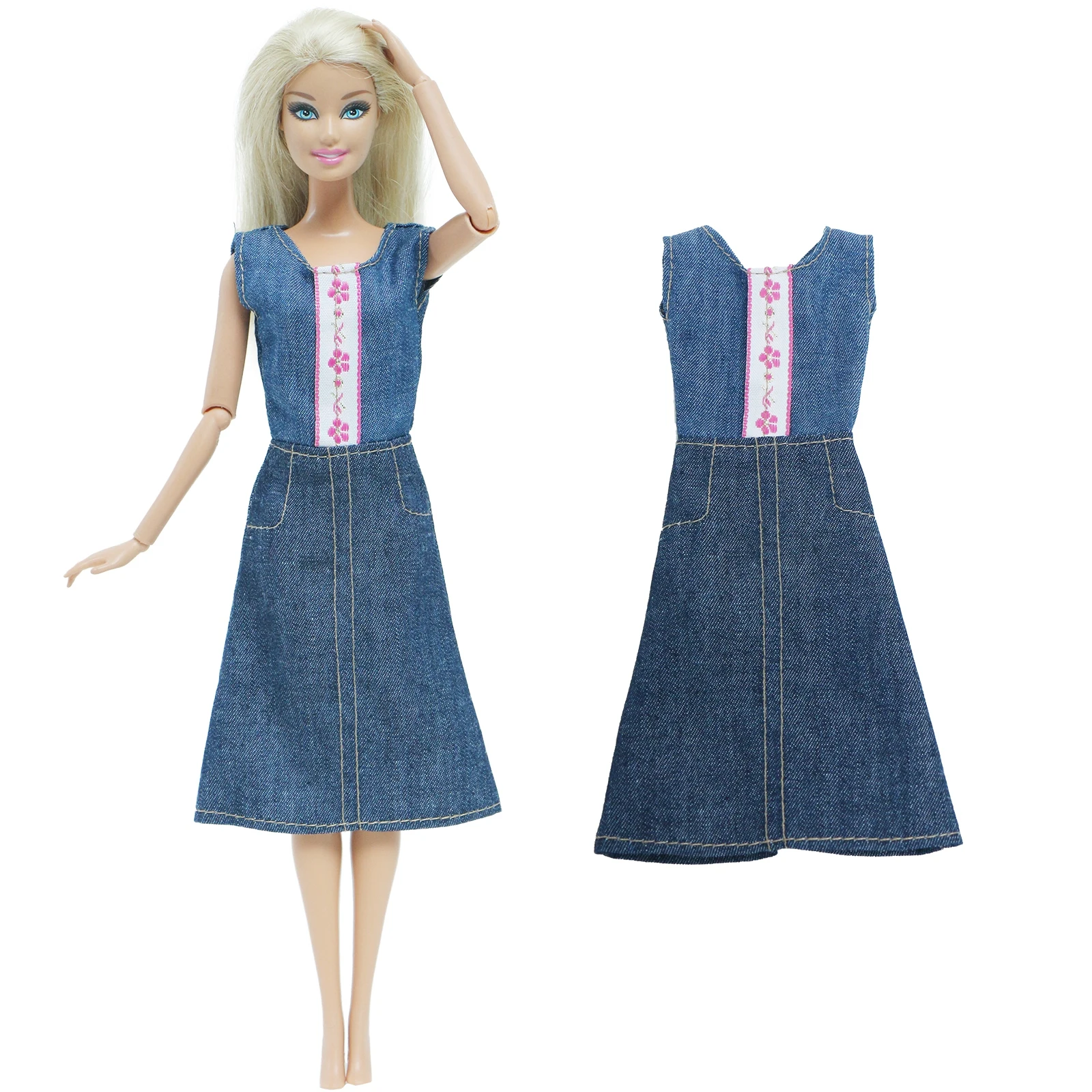Голубое джинсовое платье без рукавов BJDBUS, 1 шт., повседневная одежда для Барби, аксессуары для кукол, детские игрушки