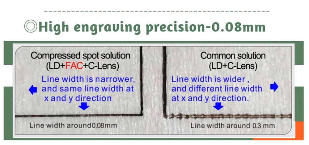 Синий лазерный модуль --- профессиональная лазерная головка с высокой скоростью и высокой стабильностью. Яркий синий светильник, легко найти при резке.