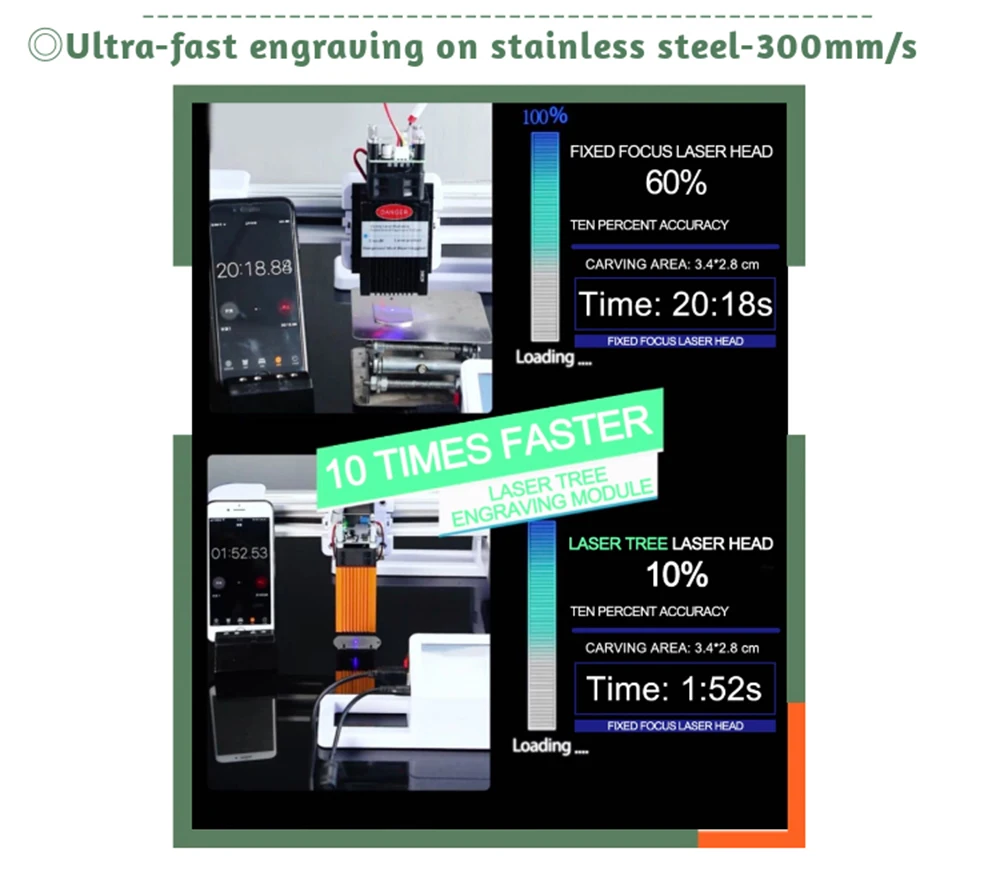 Высокая скорость гравировки из нержавеющей стали ~ 300 м/с