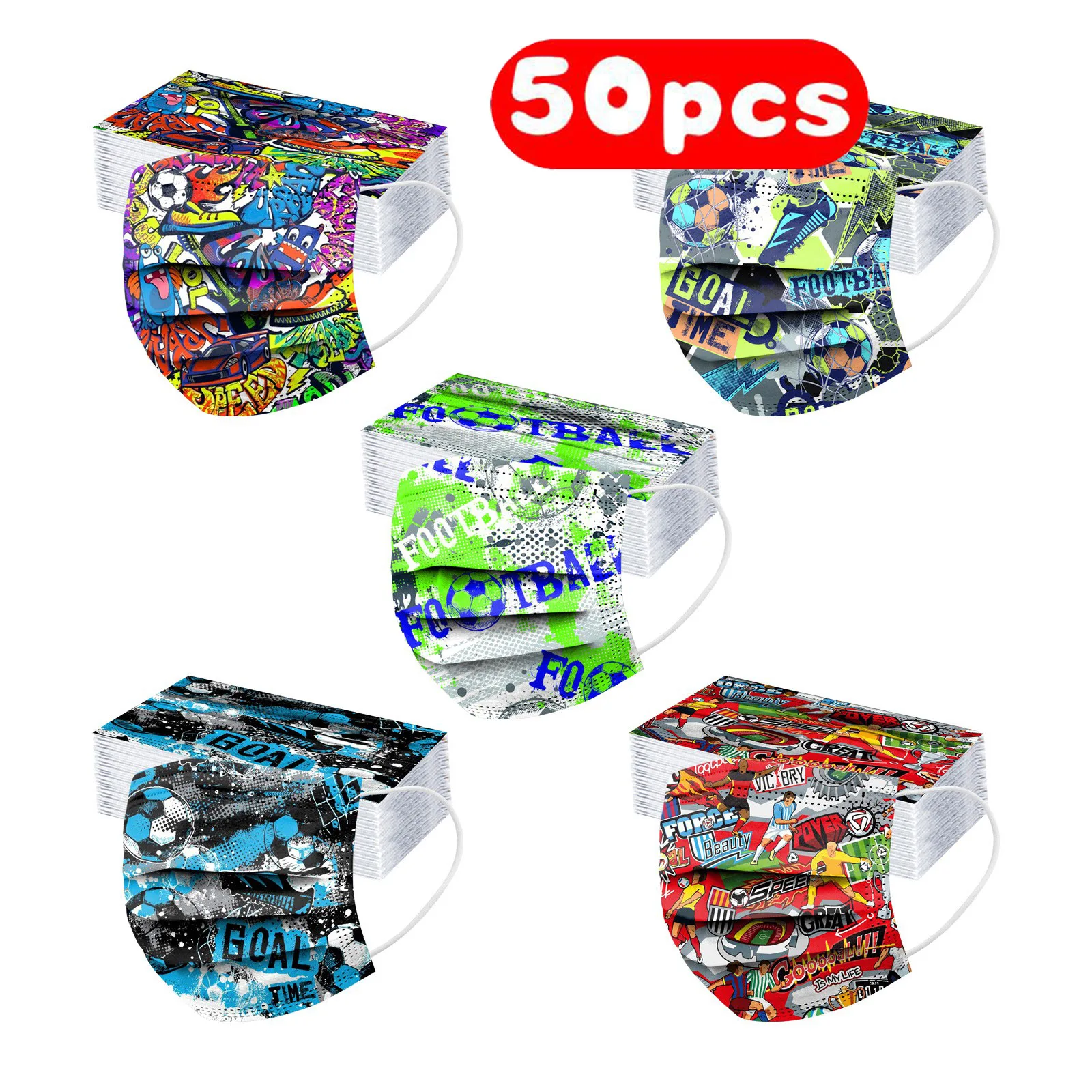 50 шт., одноразовые маски для детей, с принтом в виде футбола