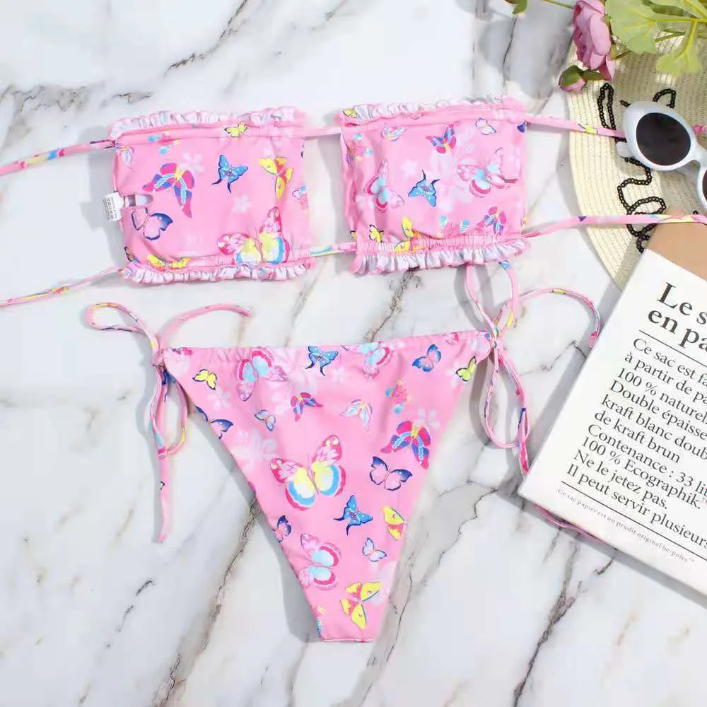 Женские купальники бикини с оборками, сексуальные купальники, комплект бикини-бандо, купальник с вырезами, летние пляжные купальные костюмы, Размеры S L