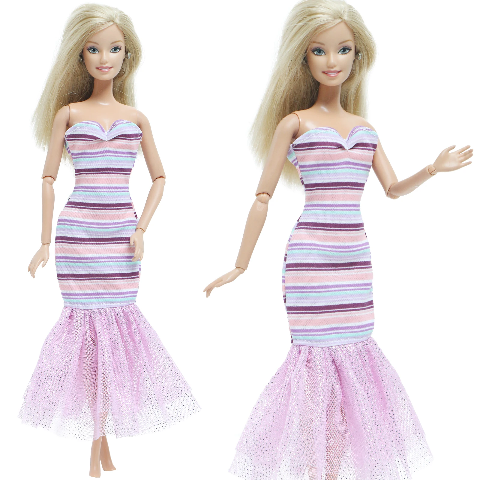 1 шт. фиолетовое вечернее платье BJDBUS с хвостом русалки, платье для вечеринки, юбка рыбий хвост в полоску с узором, одежда для косплея, Одежда для куклы Барби