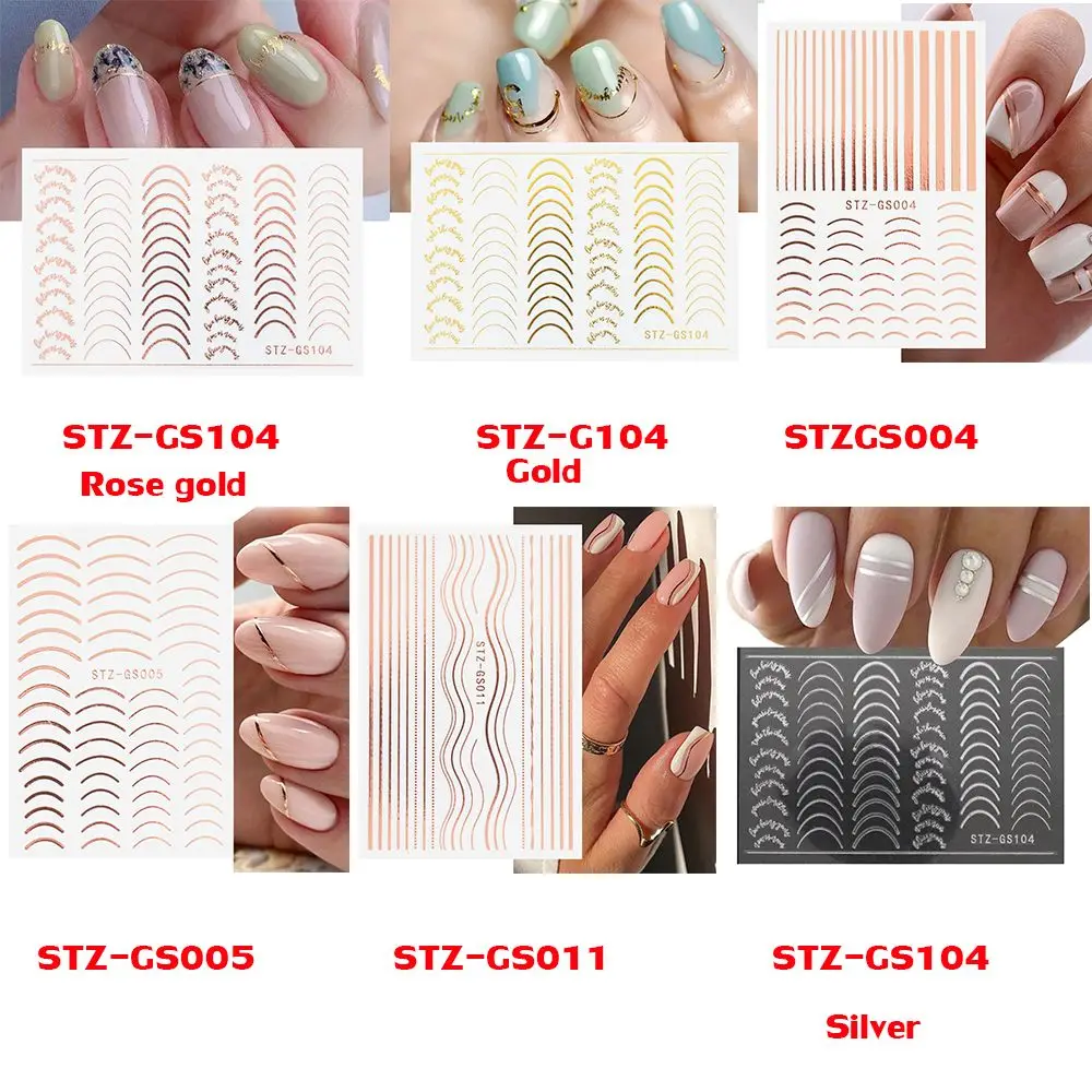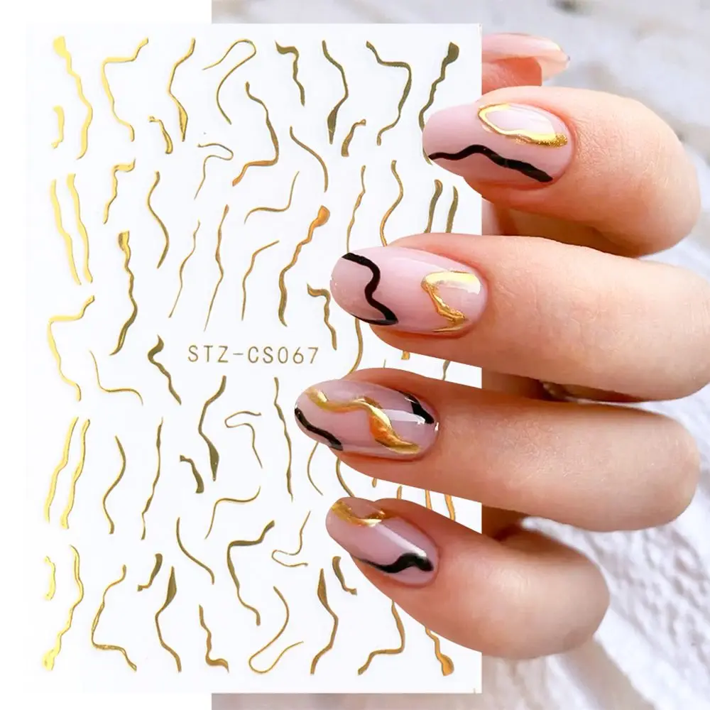 3D наклейки для ногтей, 1 лист, Золотая Полоска, Мраморная линия, наклейки для ногтей, Переводные летние слайдеры, украшения для ногтей