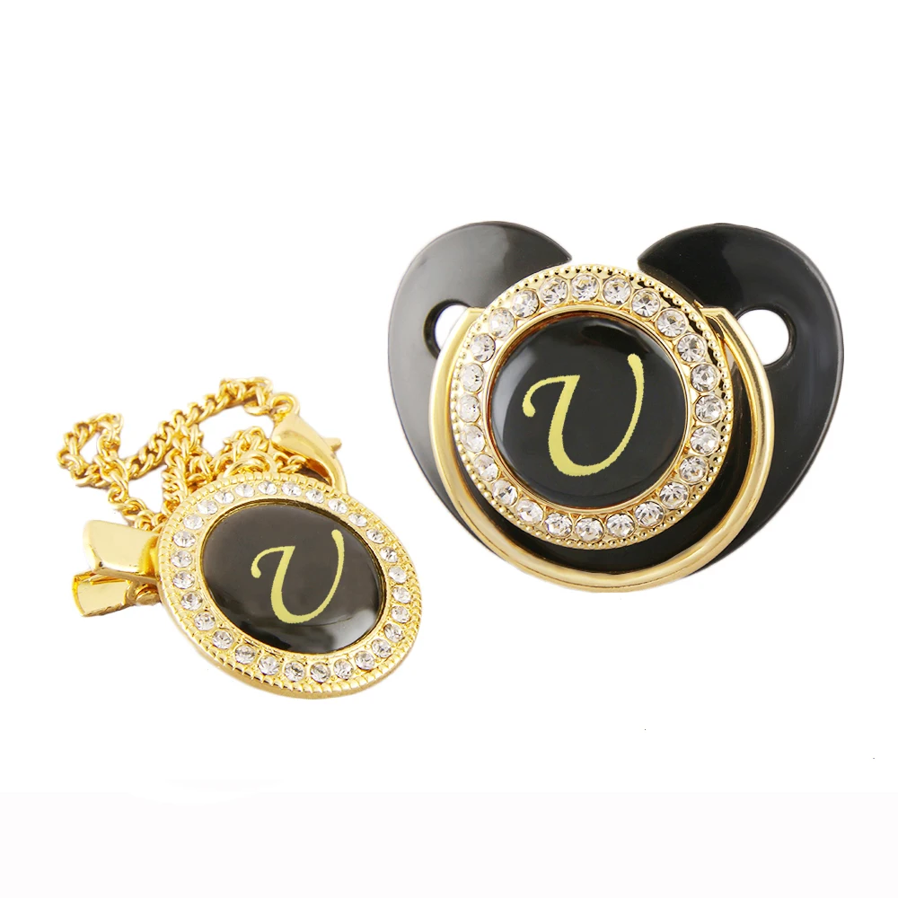 Стильный, с блеском золота соски-пустышки с Стразы 26 букв с гравир...
