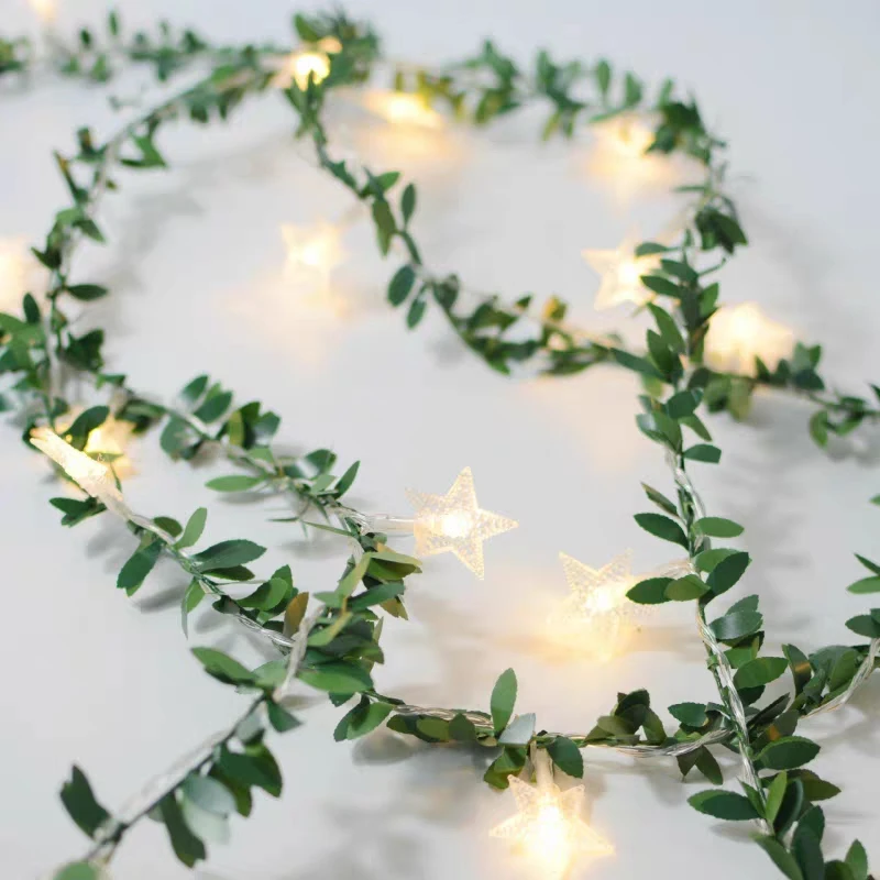 Гирлянда с искусственными листьями из меди, 2 м, 20 светодиодов