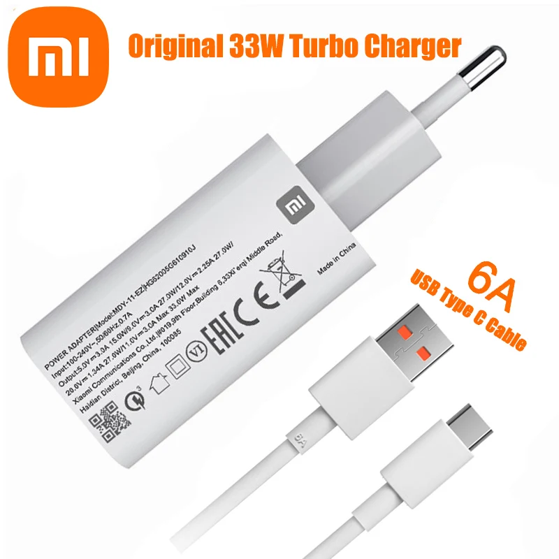 Оригинальный адаптер для быстрой зарядки Xiaomi MDY-11-EZ 33 Вт EU Turbo 100 см 6A Быстрый зарядный кабель для MI 11 10 Ultra 9 Pro 10T 10S Poco