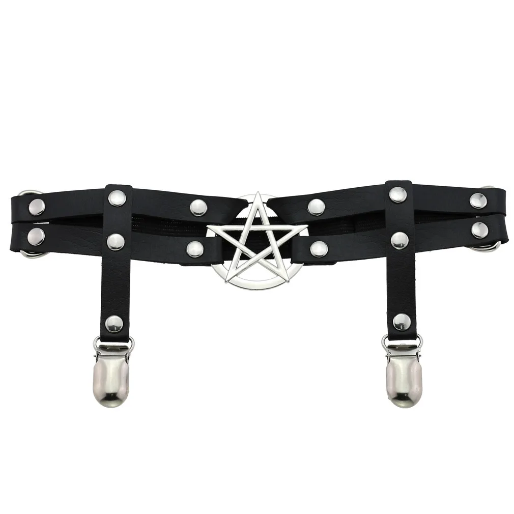 Женские пикантные кожаные эластичные подвязки со звездами, кольца для ног, подвязки, ремни для косплея, шипы, эластичные подвязки для бедра, цельные многоразовые подвязки