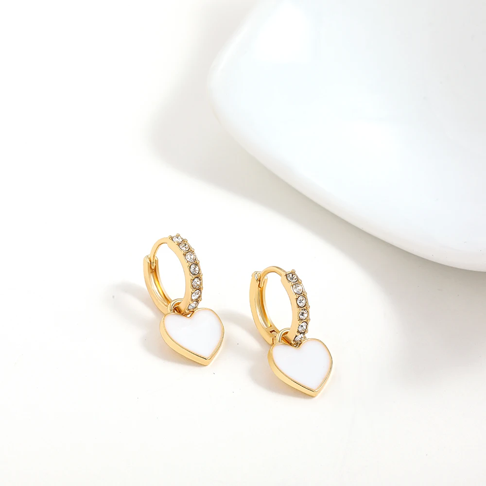 Медные золотистые серьги-кольца Huggie, для женщин, эмалевые, в форме сердца, с кулоном из циркония, маленькие круглые серьги для пирсинга, ювелирные изделия