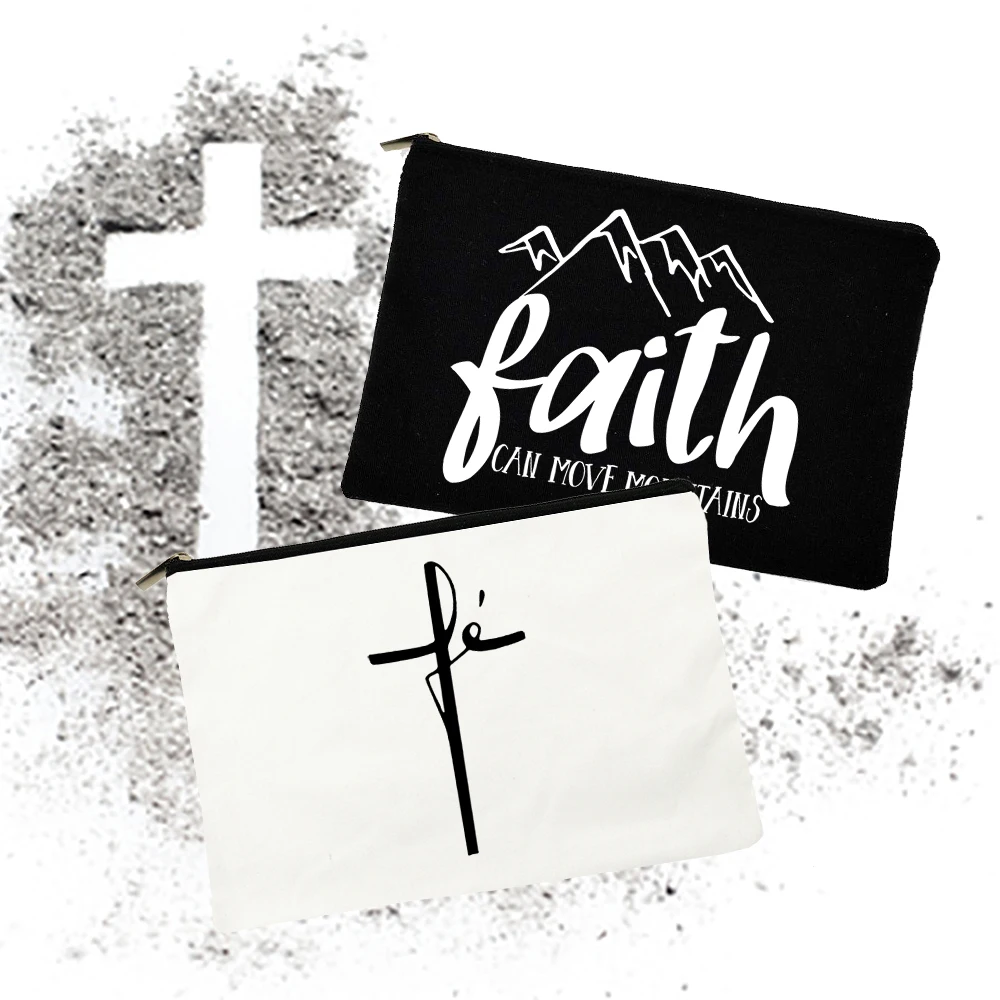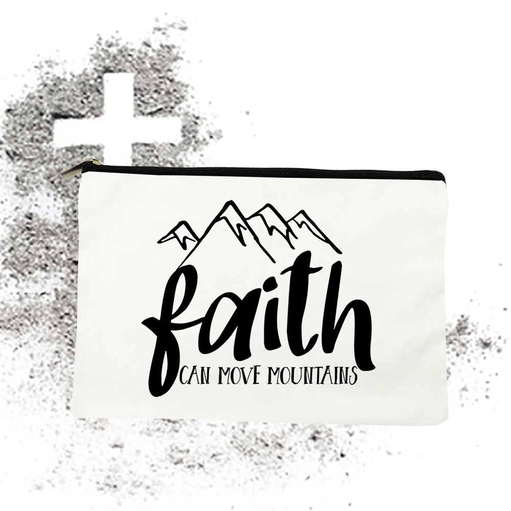 Женский тканевый косметический чехол Faith Can Move, модная сумка на молнии, сумка для макияжа, сумка для хранения помады, Лучший христианский подарок