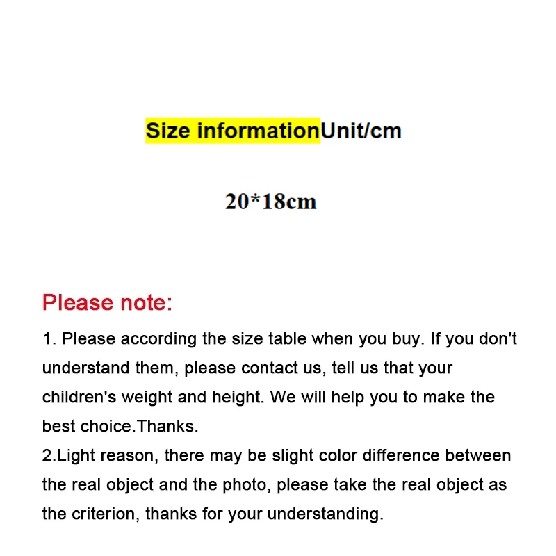 1. Пожалуйста, при покупке выбирайте размер в соответствии с таблицей размеров. Если вы не понимаете их, пожалуйста, свяжитесь с нами, сообщите нам вес и рост вашего ребенка. Мы поможем вам сделать лучший выбор. Спасибо.2. Светильник причине Вас принять во внимание тот факт, быть s светильник разница в цвете между реальным товаром и его фото, пожалуйста, примите реальный объект, данный факт, спасибо за ваше понимание.