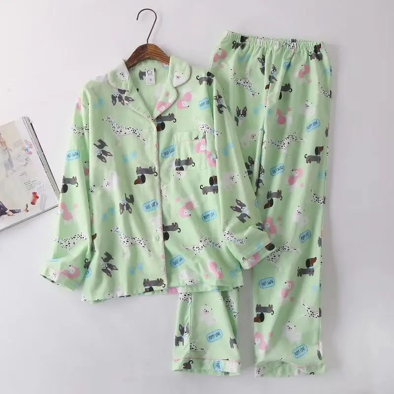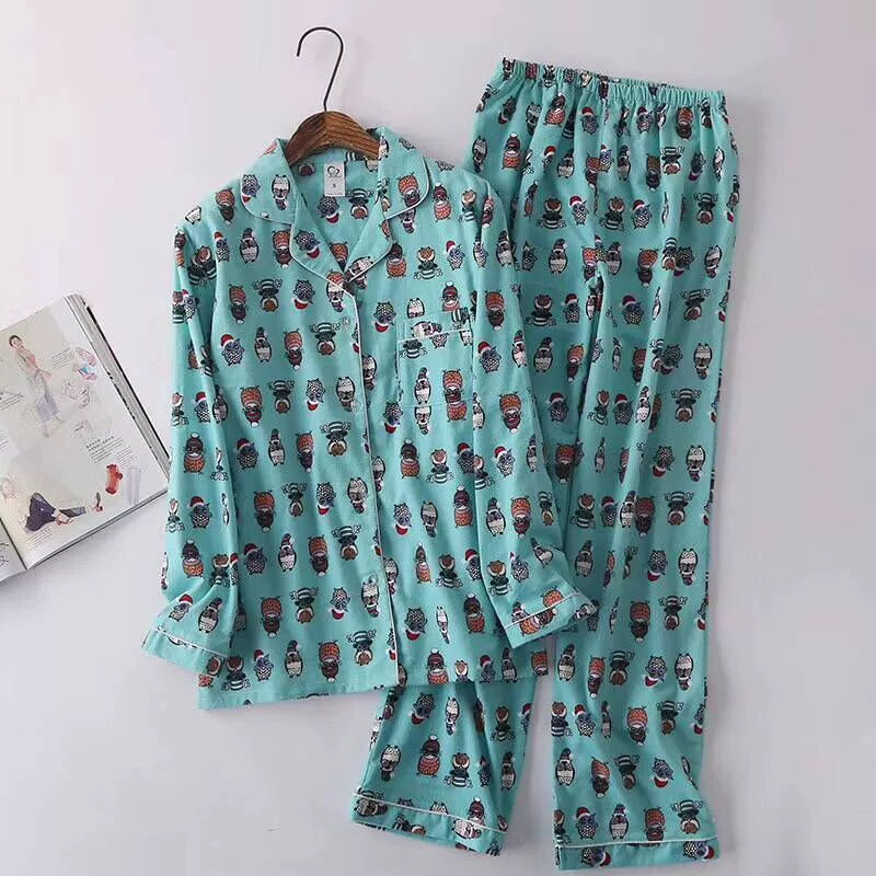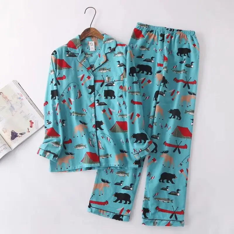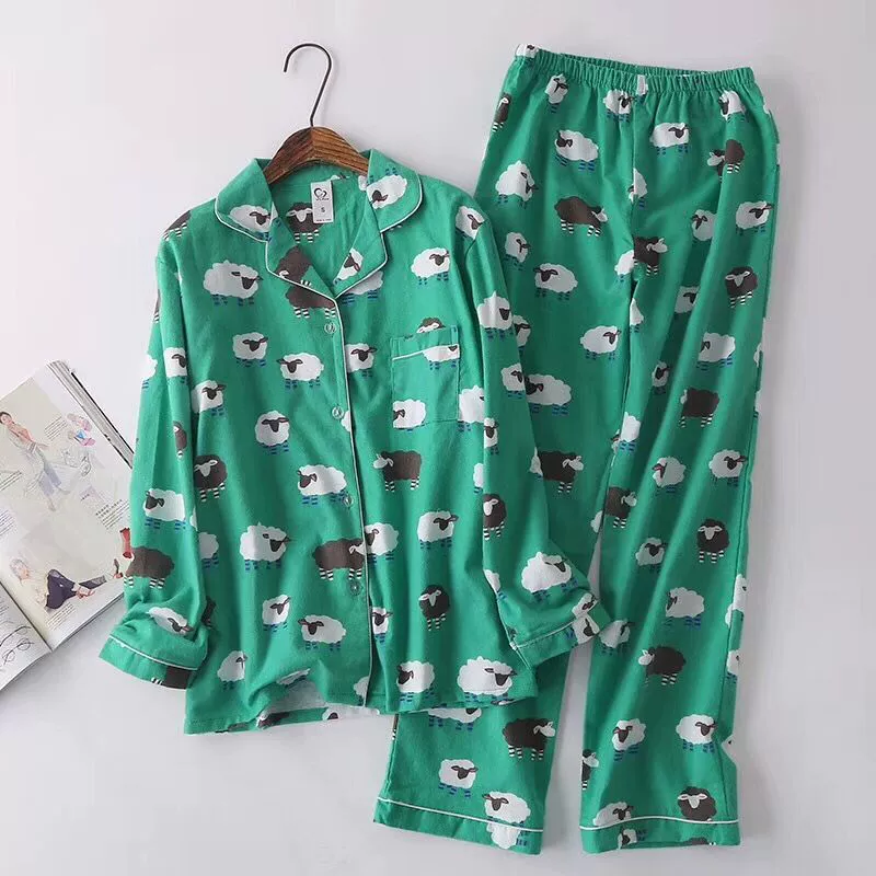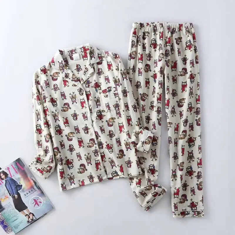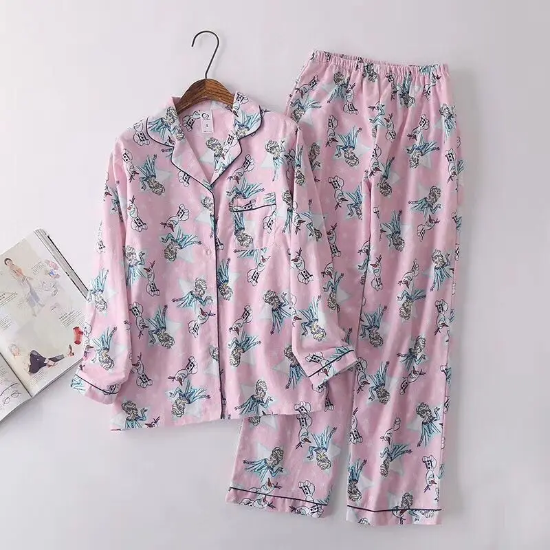 Осенне-зимние новые женские пижамные комплекты, хлопковые фланелевые Мультяшные повседневные пижамные костюмы, комплект из 2 предметов, одежда для сна, женская модная домашняя одежда