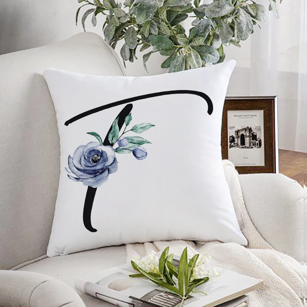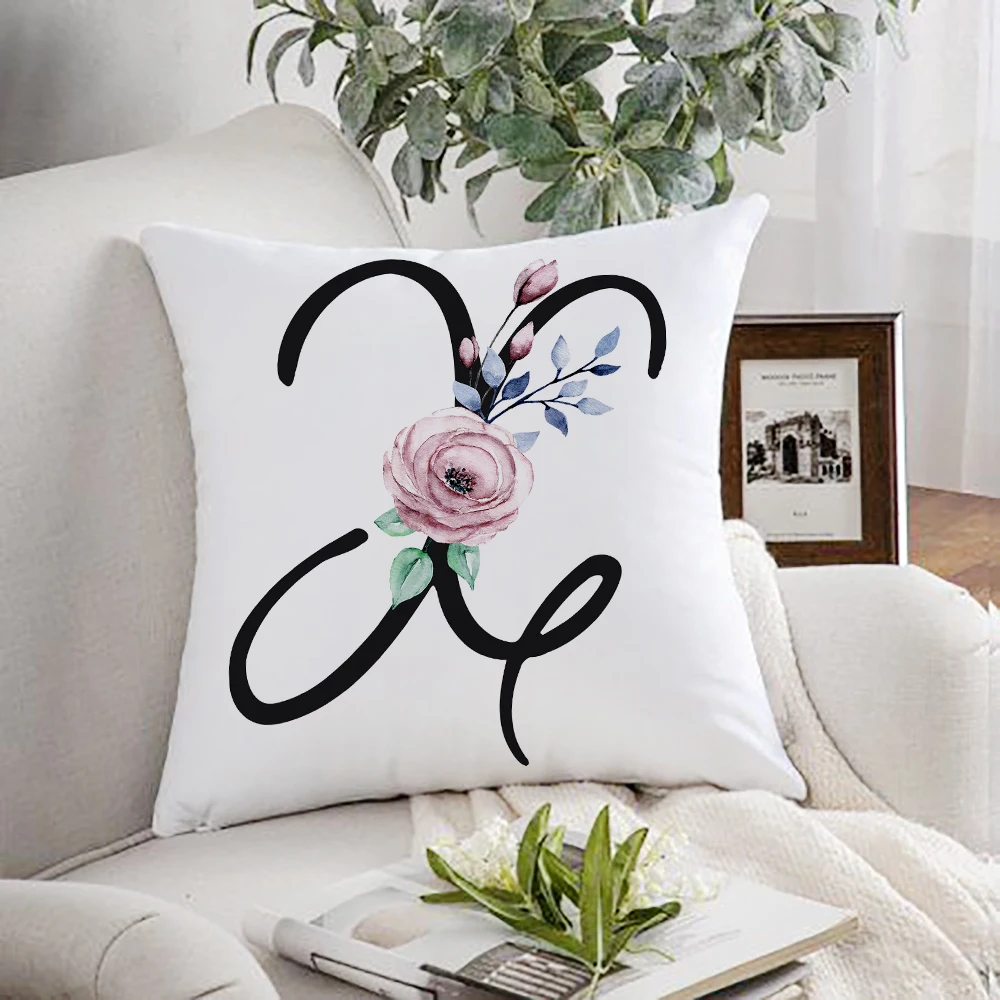 Наволочка из полиэстера с черным алфавитом и цветком для домашнего декора, наволочка для дивана, прикроватная спинка, Офисная Автомобильная поясничная наволочка 45*45 см Описание: