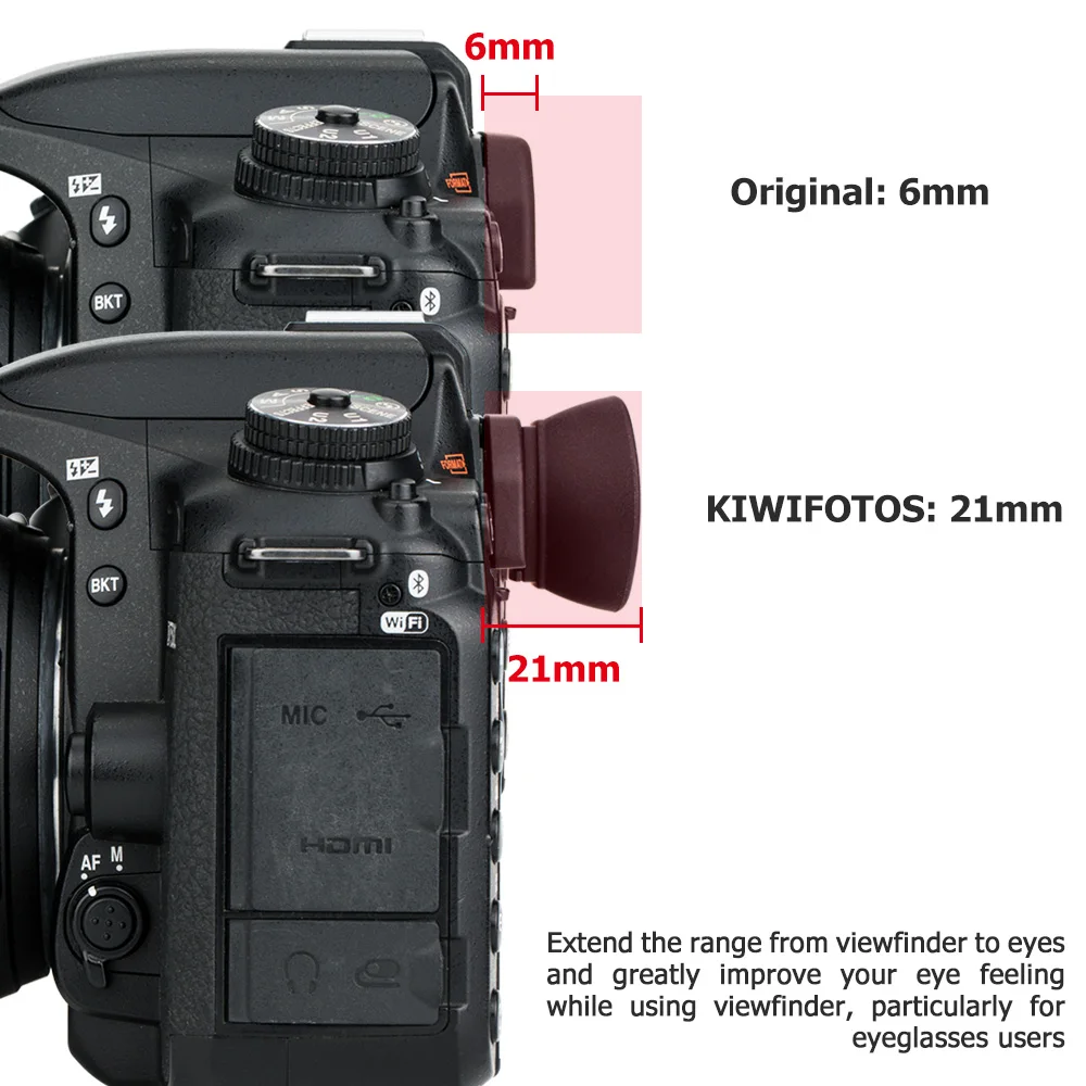 Удлиненный наглазник для камеры серии KIWIFOTOS KE специально разработан для выбора камеры s. Во время съемки наглазник может не только защитить ваш видоискатель от ударов и царапин, но и защитить видоискатель от грязи, влаги, пыли и нежелательного светильник, тем самым обеспечивая более детальное изображение. Наглазник серии KE-это удлиненный наглазник для камеры, который изготовлен из прочного АБС-пластика и мягкого силикона. Это позволяет более комфортно смотреть, когда камера держится на глаза, особенно при ношении очков. И он также защищает ваши очки от царапин.