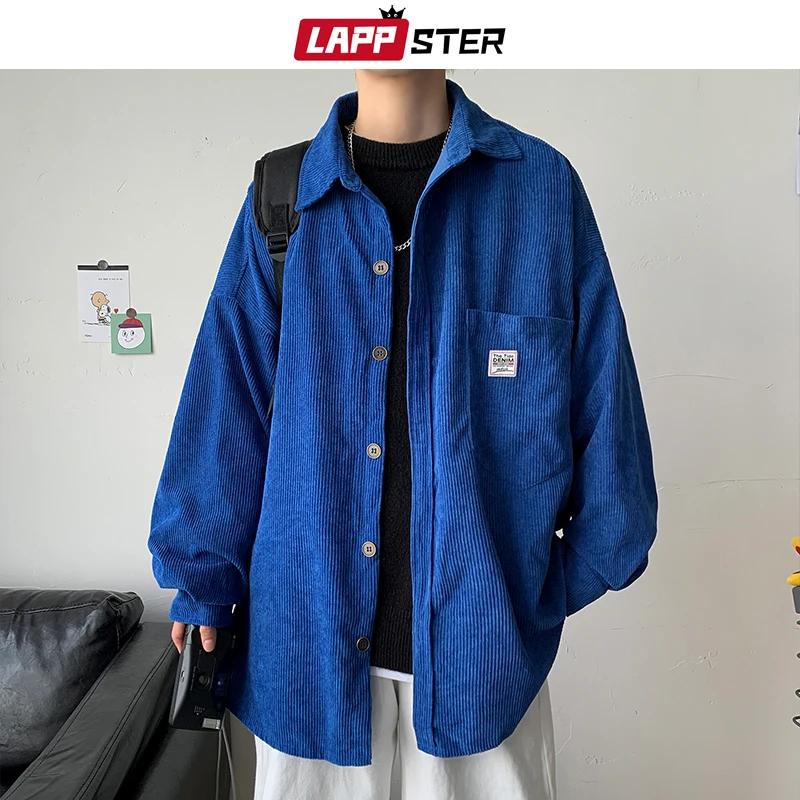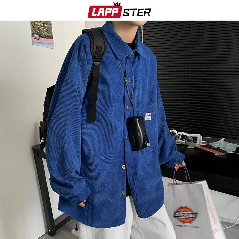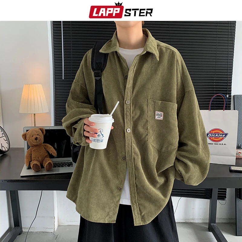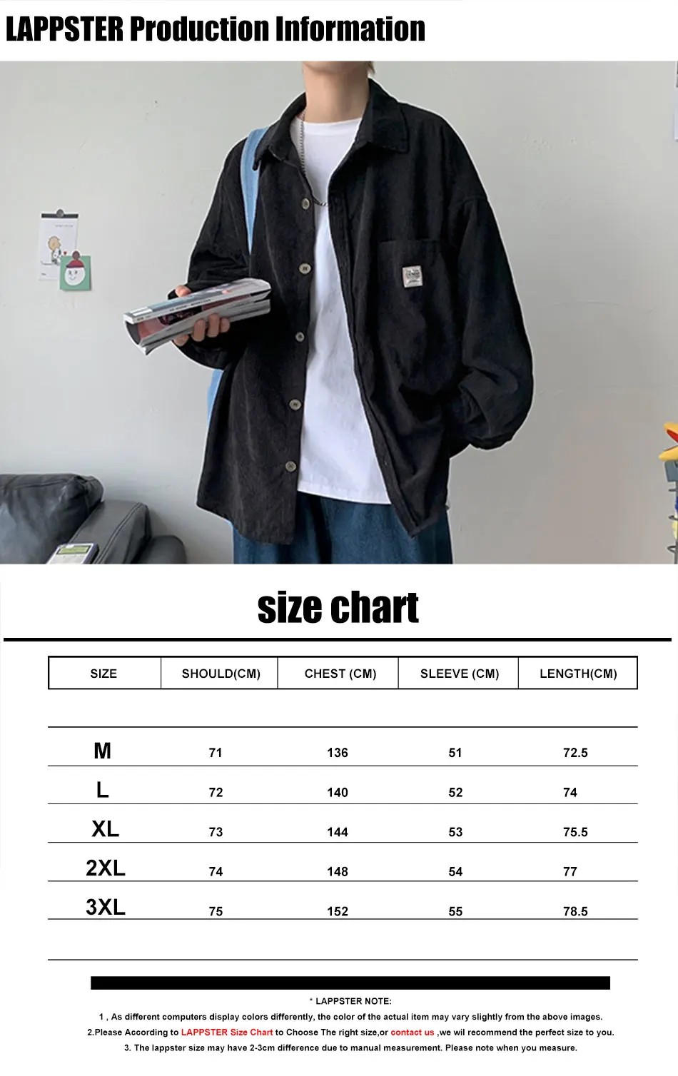 Рубашка LAPPSTER Мужская Вельветовая, винтажная модная уличная одежда в Корейском стиле, большие размеры, в стиле Харадзюку, осень 2022