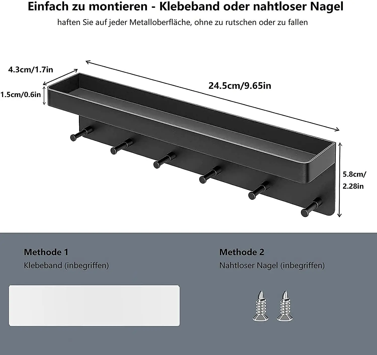 【 Самоклеящаяся ключница 】 усовершенствованная самоклеящаяся лента имеет ту же ширину, что и держатель для ключей, которая может быть легко скрыта на держателе для ключей и на стене, не влияя на внешний вид. Вы можете легко разместить держатель ключа на любой гладкой поверхности, такой как стекло, дерево, металл, клеевая плитка или мрамор. Нет необходимости Сверления!【Six hooks】 размеры 25,4 см x 4,2 см x 5,8 см. Подставка для ключей идеально подходит для крепления рядом с входной дверью и предлагает вам больше удобства. Эта клавишная доска с 6 крючками на дне удерживает ваши ключи, сумки, поводок для собаки или зонтик, а лоток для ключей сверху остается бесплатным для букв, мобильных телефонов и многих других вещей.【Простая сборка, как у вас: Наша вешалка для ключей готова к использованию без сборки. Мы предоставим вам самоклеющийся клей и винты. Если вы хотите повысить стабильность и разрешить сверление на стене, вы можете прикрепить брелок к стене с помощью предоставленных винтов.【Высококачественная Рабочая стойка для ключей изготовлена из черной лакированной нержавеющей стали, прочная и долговечная. Простой и стильный дизайн для различных стилей жизни! Он хорошо сочетается с вашей гостиной, кухня, ванная комната, гараж, офис-который предлагает стиль, функциональность и долговечность.【Сильная несущая способность 】 наша ключевая плата является сильным несущим, водонепроницаемым и влагозащищенным. Если у вас есть какие-либо вопросы или проблемы, пожалуйста, свяжитесь с нами. Мы ответим вам в течение 24 часов.