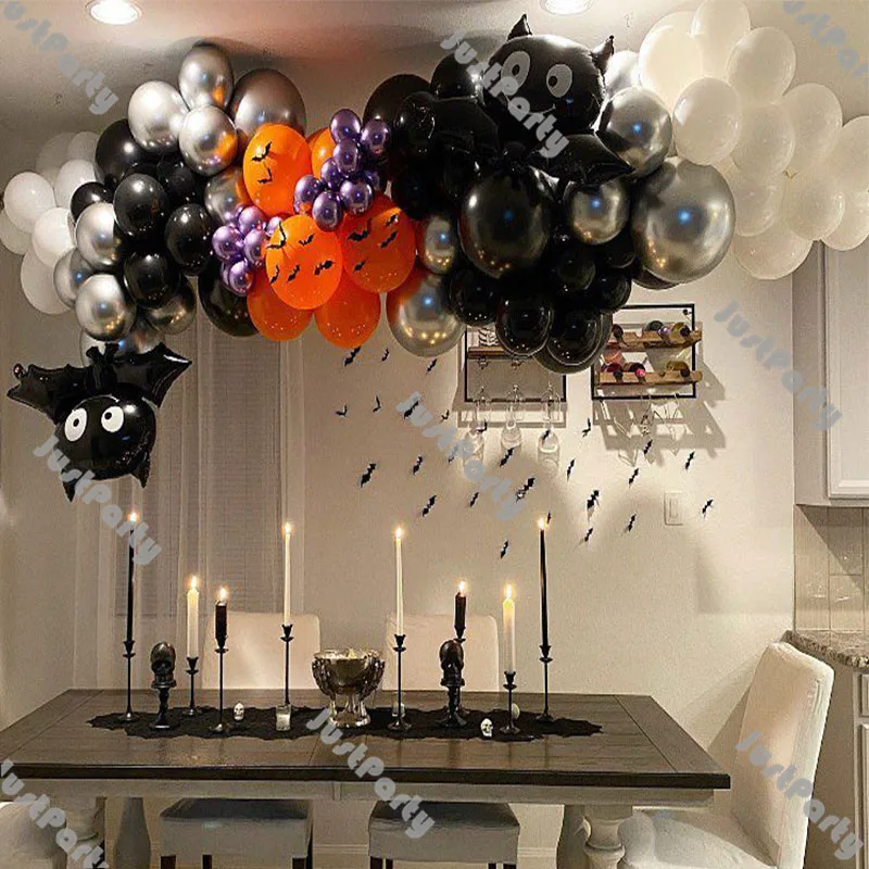 93 шт. Матовый черный шар, гирлянда, арочный комплект, украшение для Хэллоуина, черная летучая мышь, декор, оранжевый, фиолетовый, белый шар, товары для дня рождения