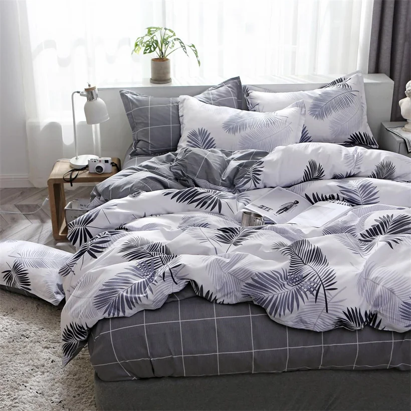 Постельное белье в скандинавском стиле, пододеяльник с белыми листь...