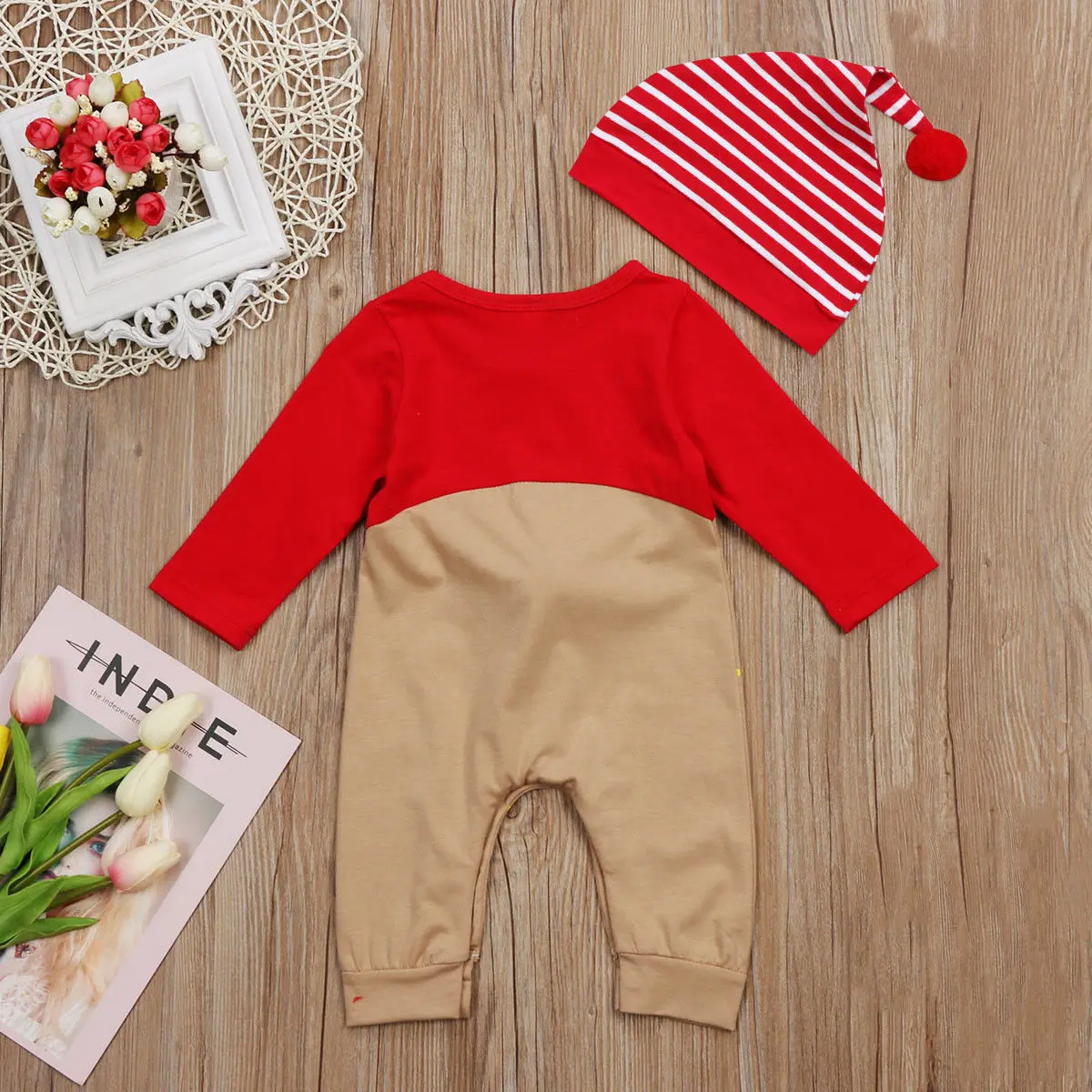 Детский Рождественский комбинезон с принтом оленей, одежда для маленьких мальчиков и девочек, Рождественский комбинезон с длинным рукавом + шапка, одежда