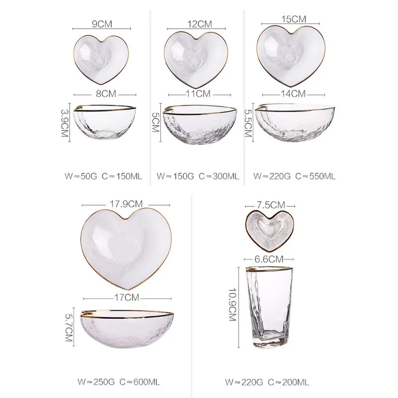 Посуда, чаша в форме сердца, стеклянная чаша для приправ, фруктов, салатов, блюдо для соуса, тарелка для аппетита, кухонный инструмент, кухонные аксессуары
