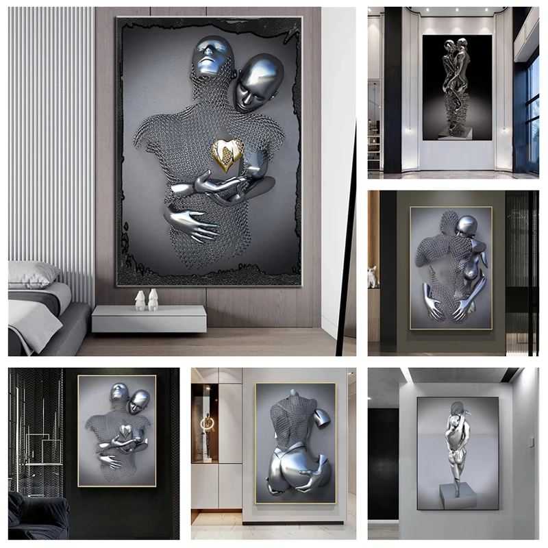 Скандинавские пары, металлическая статуя, Картина на холсте, скульптура для влюбленных, плакаты и печать, Настенная картина для гостиной, домашний декор
