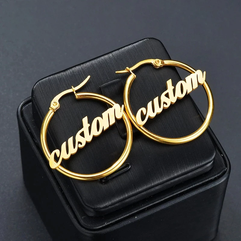 Spark 1 пара трендовые серьги-кольца из нержавеющей стали с именем на заказ для женщин Персонализированные серьги-подвески с надписями