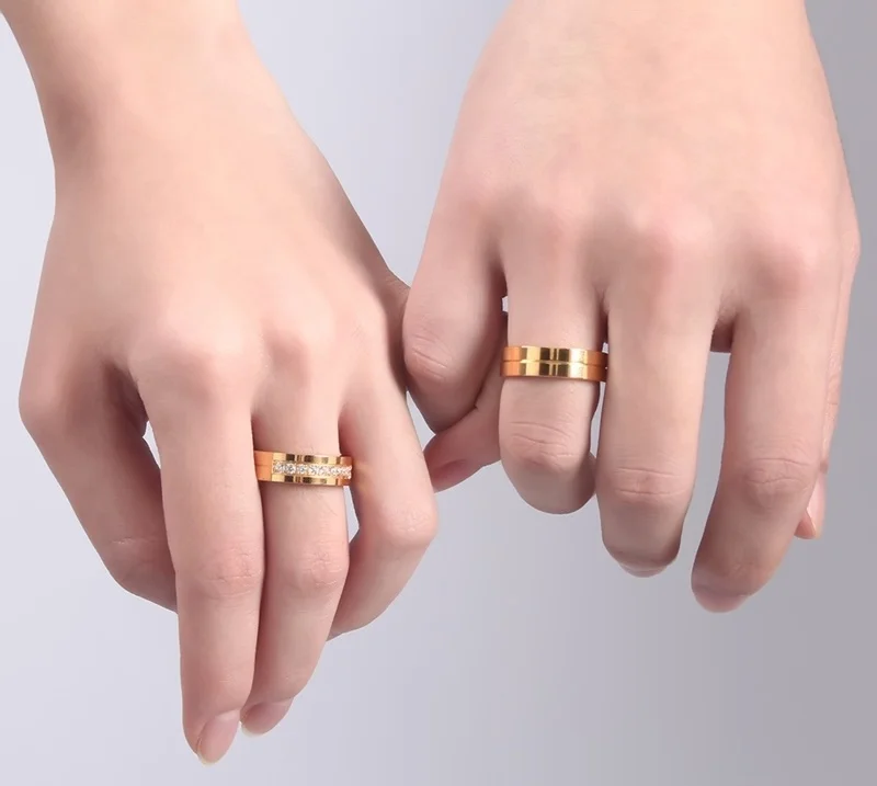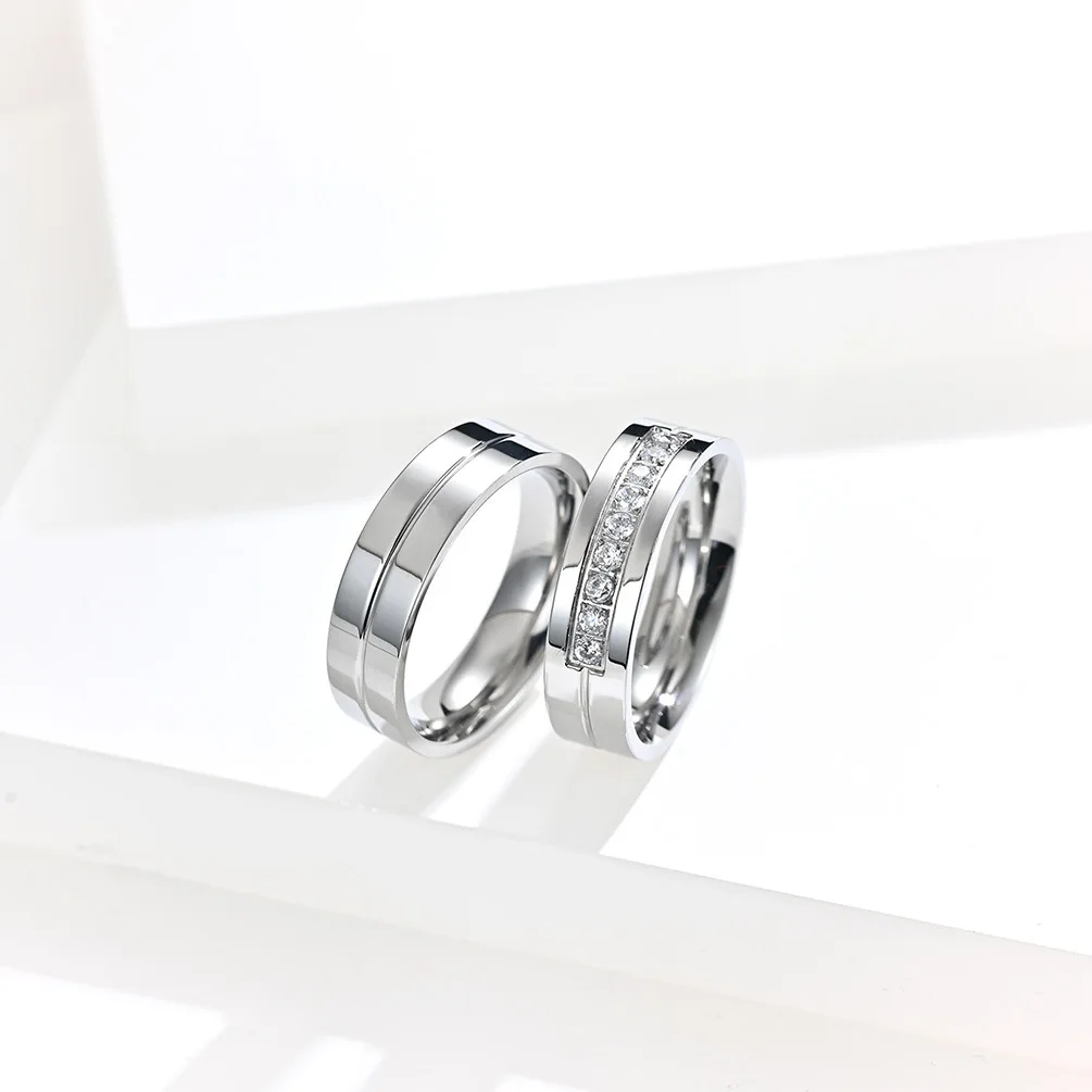 Серебряный Цвет парные кольца из нержавеющей стали для мужчин и жен...