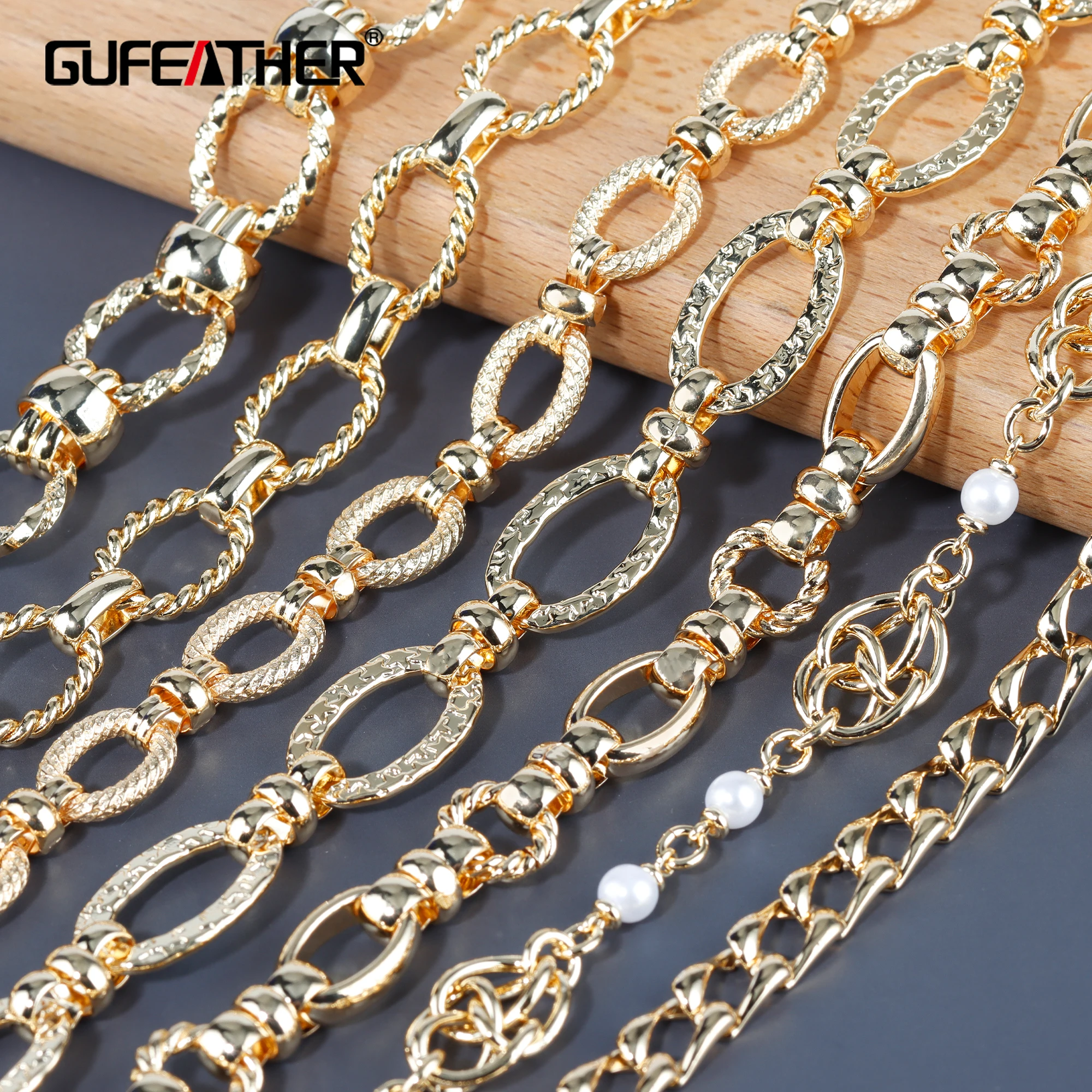 Цепочка для самостоятельного изготовления ювелирных изделий GUFEATHER, набор для самостоятельного изготовления ювелирных изделий из меди, ожерелья и браслета, 18 карат, без никеля, 1 млот, C193