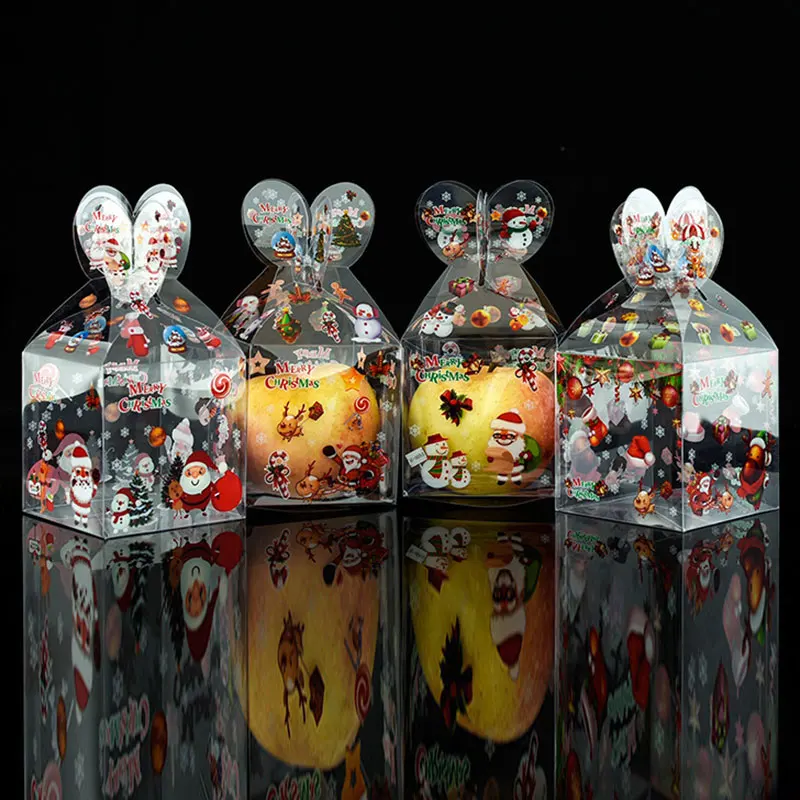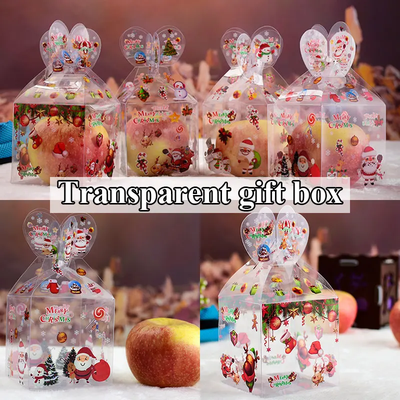 Прозрачный Рождественский чехол из ПВХ с рисунком деда мороза, Подарочная коробка для закусок, рождественские коробки для конфет, тортов, печенья
