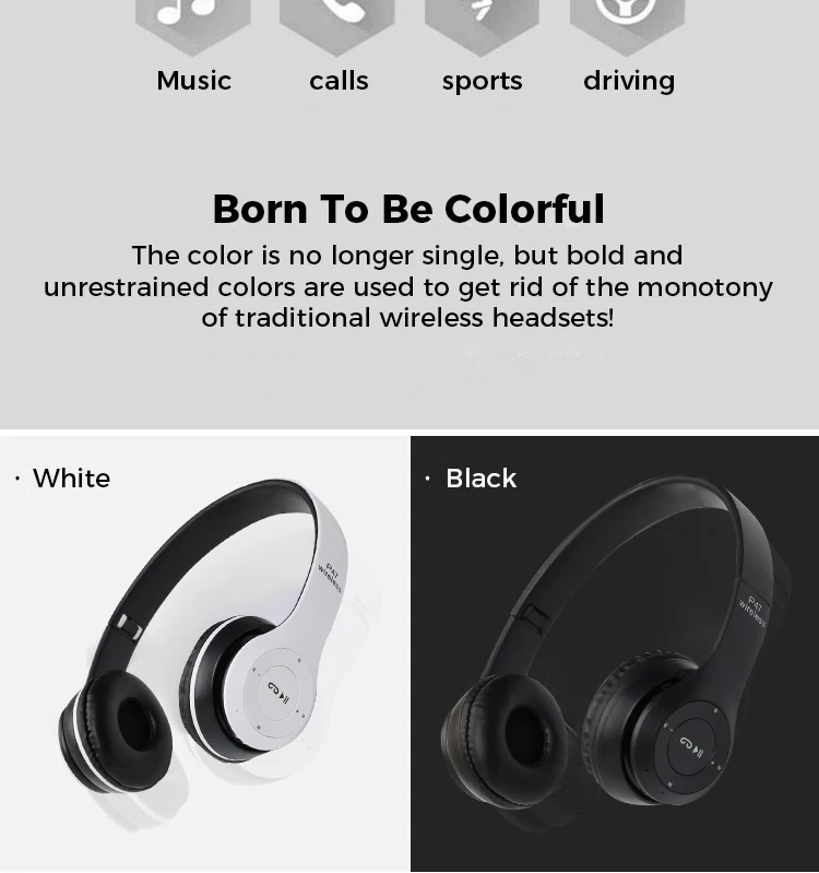 Стереонаушники P47 складные Hi-Fi с поддержкой Bluetooth и микрофоном