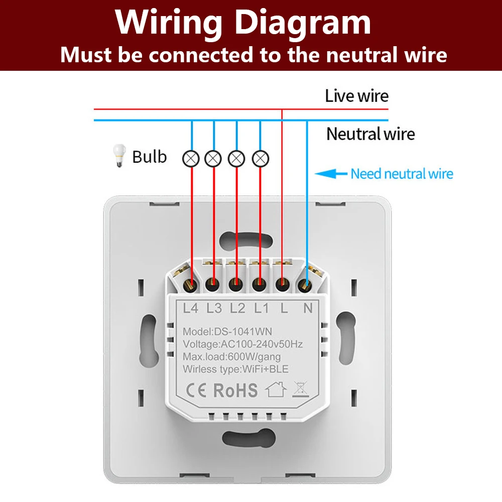 Характеристики1/2/3/4 Gang WiFi Touch Switch