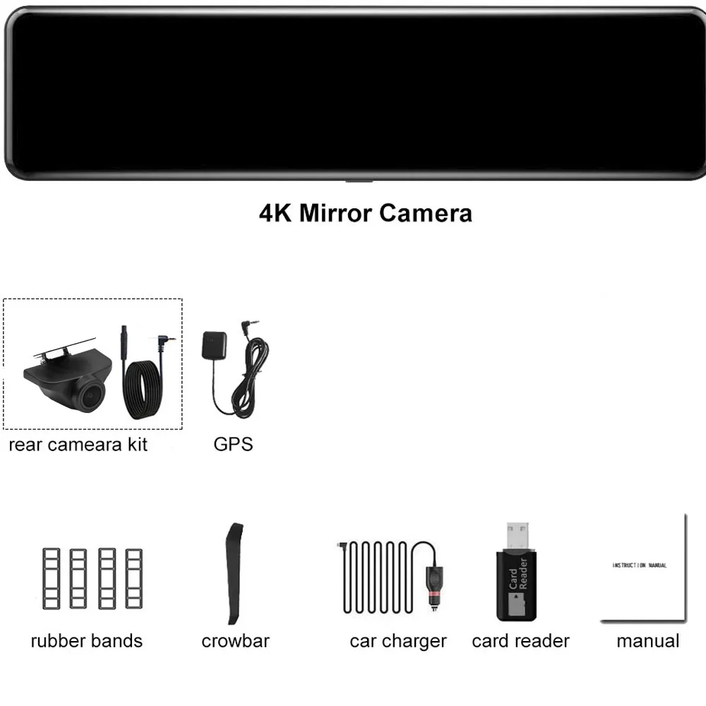 Зеркало D466, антенна GPS, задняя камера 1080P + задний кабель, автомобильное зарядное устройство, руководство пользователя, резиновые ленты, лом, кардридер