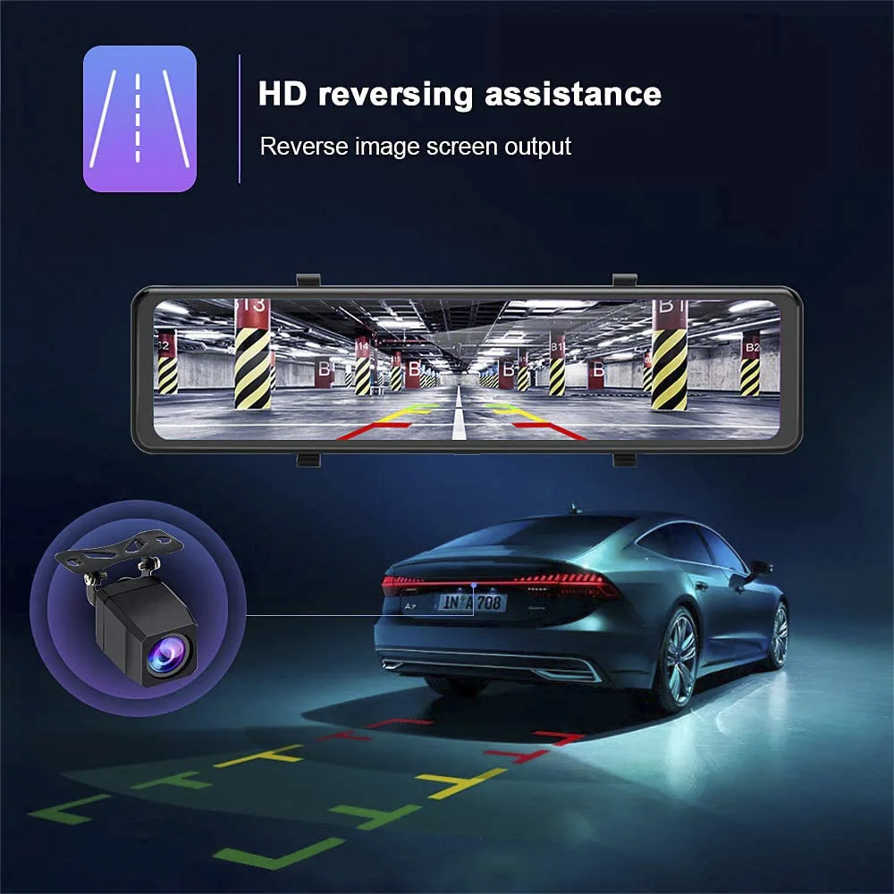 Умный переключатель угла заднего вида между вождением и парковкой. Вы можете четко видеть все дальнейшие транспортные средства и объекты позади вас во время вождения в реальном времени, и это автоматически уменьшит угол обзора сзади, чтобы получить более близкое резервное изображение при парковке.
