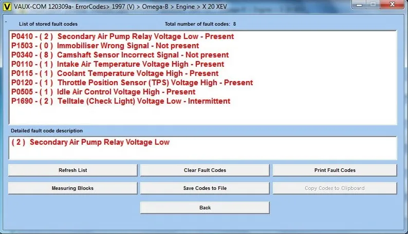 Полное описание кода неисправности:1) полная информация о состоянии (в настоящее время, нет, прерывистый)2) Вы можете распечатать, сохранить или скопировать коды неисправностей в любое другое приложение. Из окна кодов неисправностей вы можете перейти непосредственно к окну измерительных блоков.3) программа показывает вам информацию о измерительных блоках на многих модулях управления, вы можете выбрать что-либо из списка самостоятельно.4) программа может отображать 8 параметров измерительного блока одновременно. Частота образцов зависит в основном от протокола связи. Например, более старая система, такая как Омега-б X 25 DT двигатель (ISO-9141-2), может быть очень медленной, во время общения, в то время как более новые мультеки или Bosch блоки быстрее (с использованием KWP-2000), И Самые Новые блоки управления могут быть очень быстрыми!