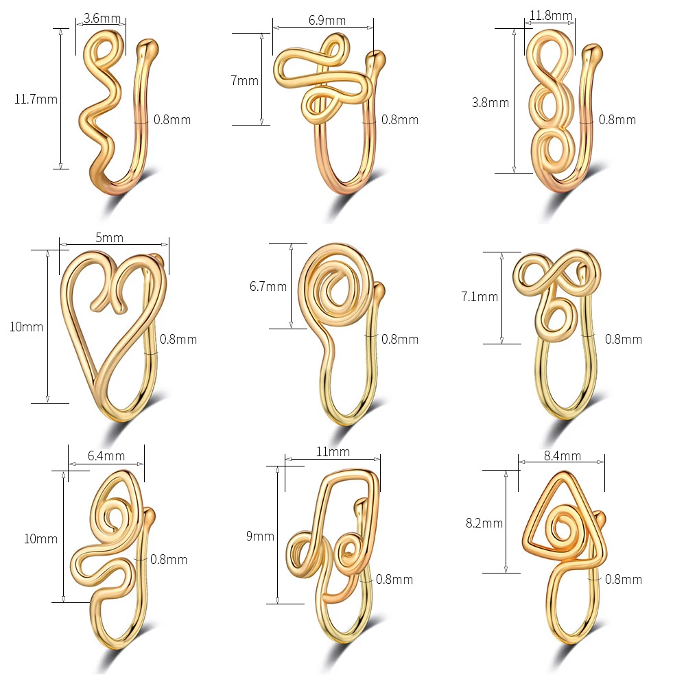 Набор колец для носа из нержавеющей стали под золото, комплект из 9...