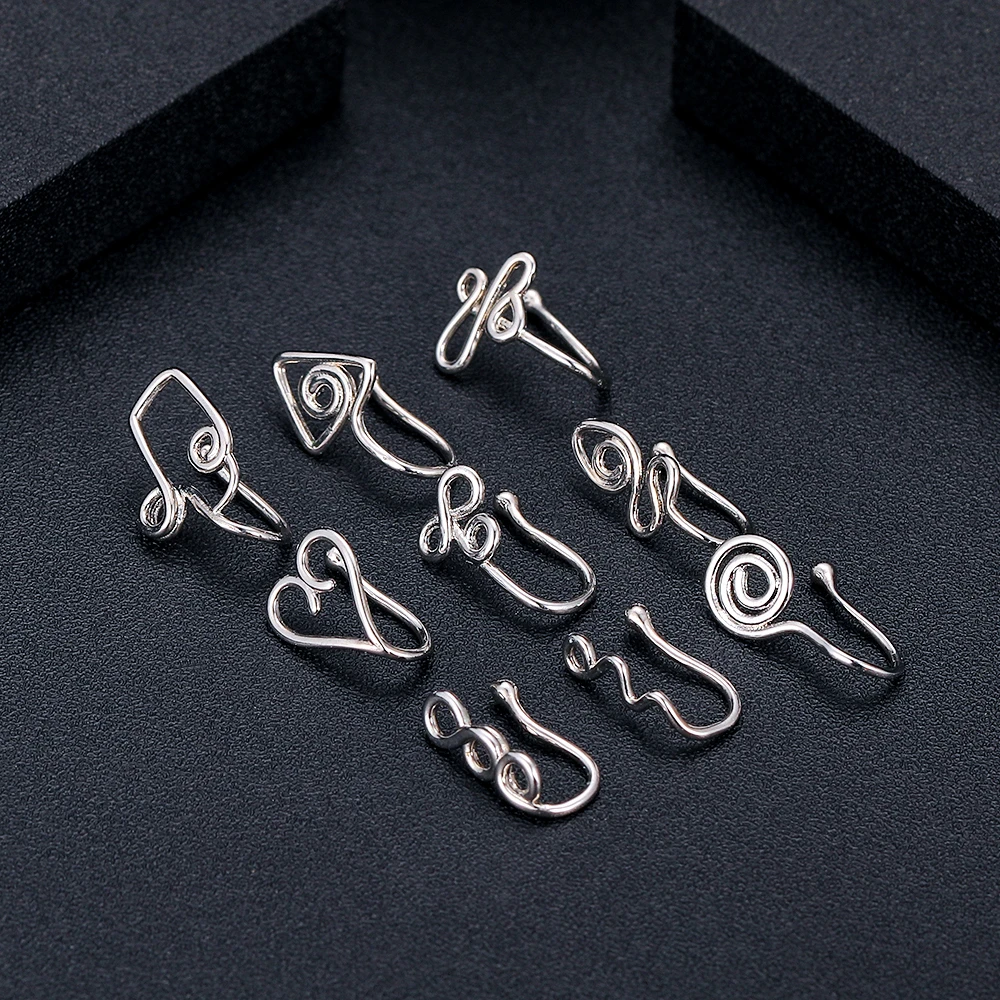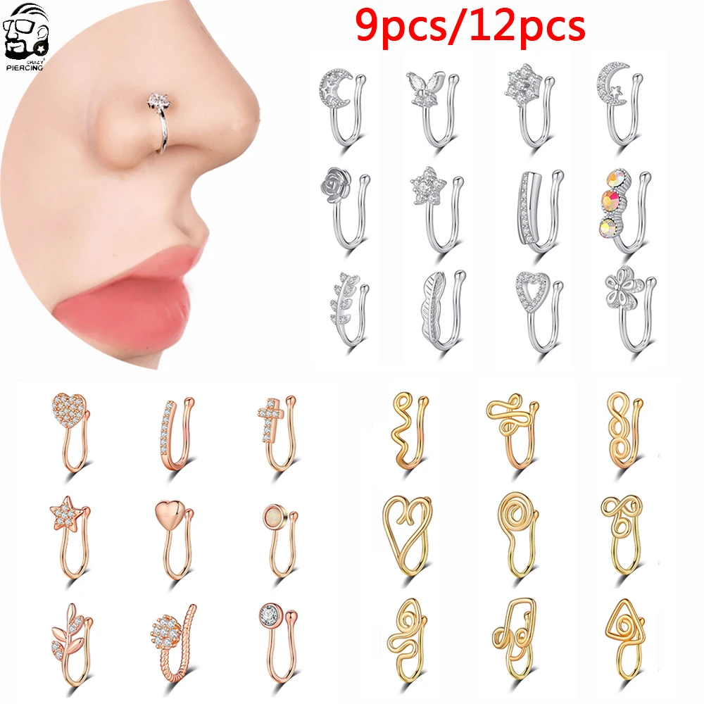 Набор колец для имитации пирсинга носа с кристаллами, 9 шт.компл., серьги-каффы для ушей и хряща, клипсы для искусственного пирсинга губ, ювелирные изделия