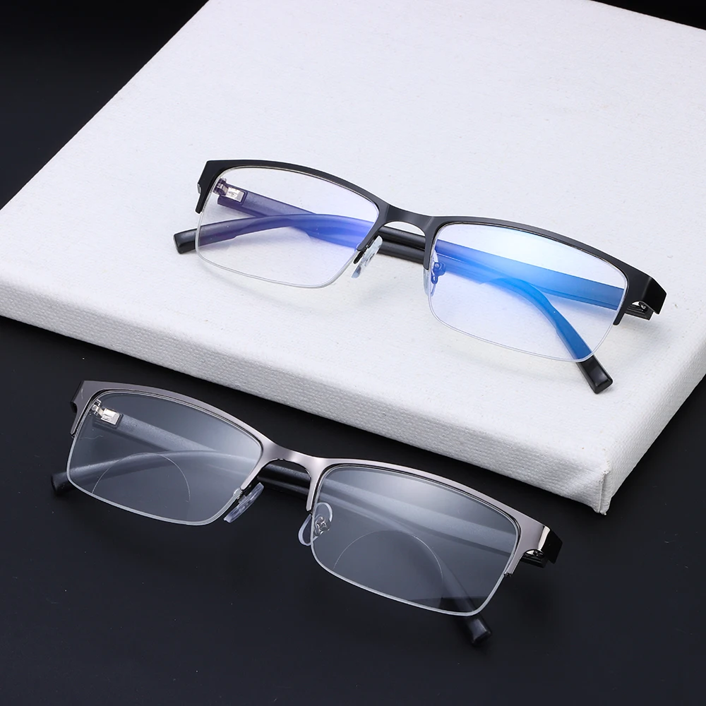 Классические полуоправы, прогрессивные очки для чтения с мультифокусом для мужчин и женщин, мужской синий светильник, блокирующие пресбиопии, очки для чтения с компьютером