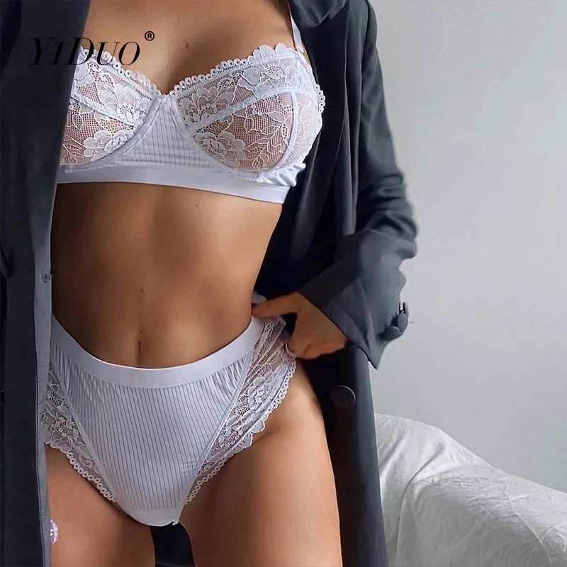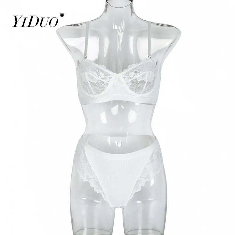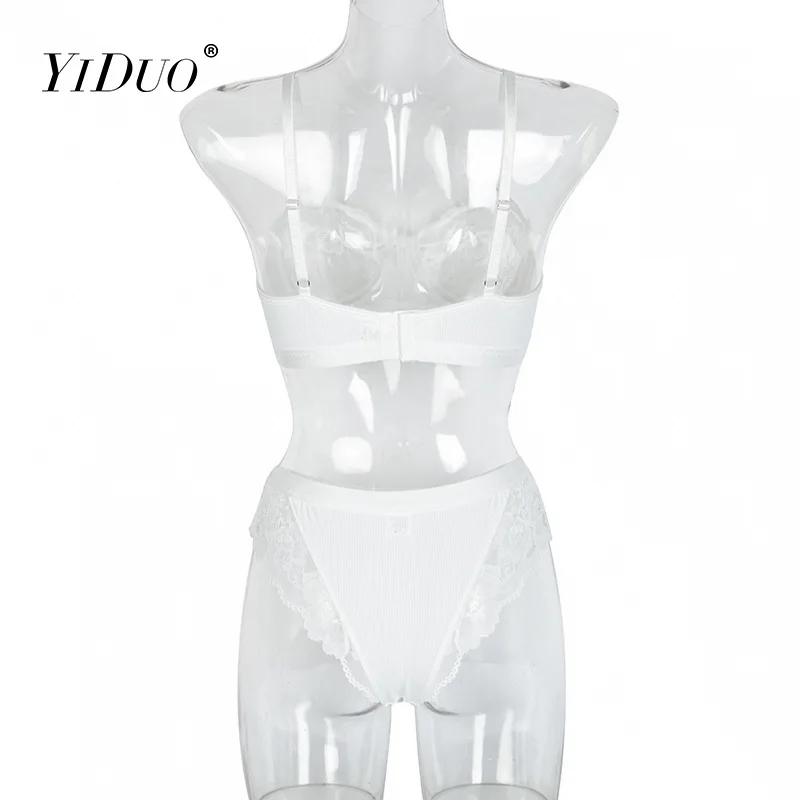 Комплект женского кружевного нижнего белья YiDuo, черно-белый, с эффектом пуш-ап
