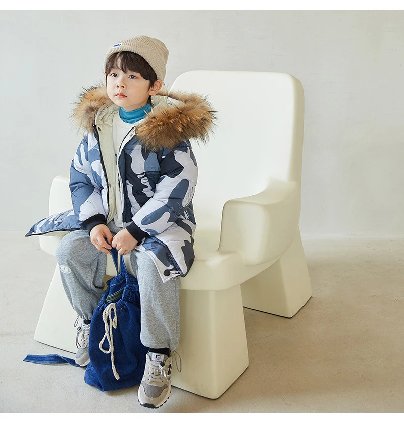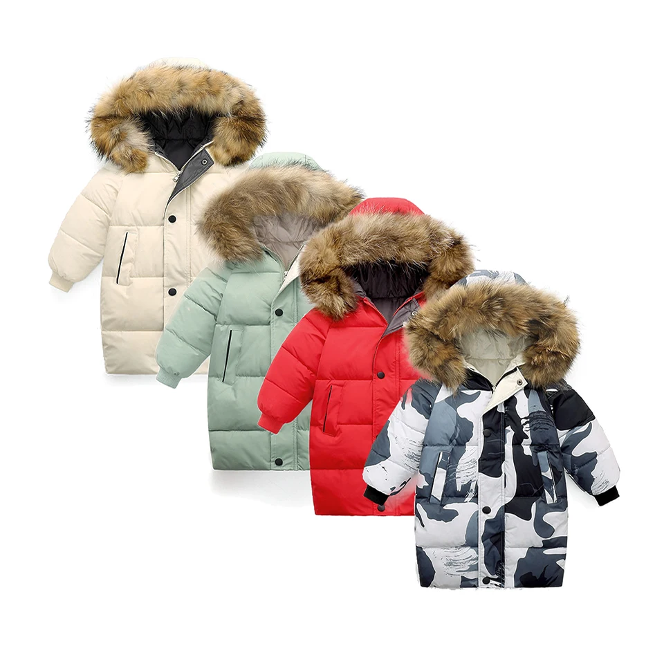 Детский длинный пуховик с капюшоном, зимний теплый пуховик для мальчиков и девочек