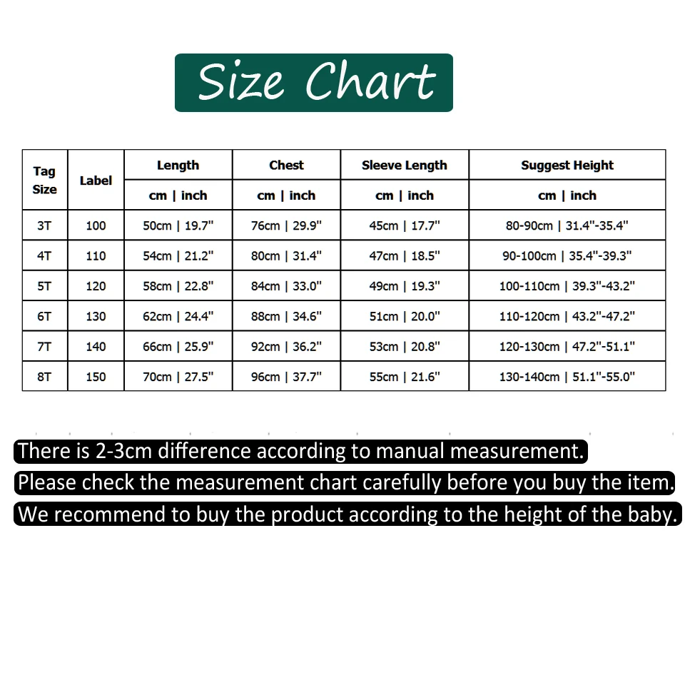 БиркаРазмерыЭтикеткаДлинаГрудьДлина рукаваРекомендуемый ростСм | ДюймСм | ДюймСм | ДюймСм | Дюйм3T10050 см |19,7''76 см |29,9''45 см |17,7''80-90 см |31,4 ''-35,4''4Т11054 см |21,2''80 см |31,4''47 см |18,5''90-100 см |35,4 ''-39,3''5T12058 см |22,8''84 см |33,0''49 см |19,3''100-110 см |39,3 ''-43,2''6T13062 см |24,4''88 см |34,6''51 см |20,0''110-120 см |43,2 ''-47,2''7T14066 см |25,9''92 см |36,2''53 см |20,8''120-130 см |47,2 ''-51,1''8T15070 см |27,5''96 см |37,7''55 см |21,6''130-140 см |51,1 ''-55,0''