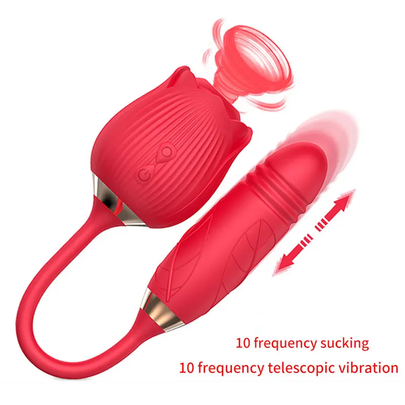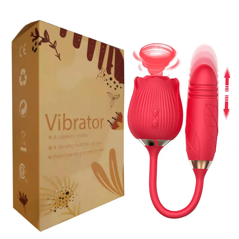 Женский вагинальный вибратор в форме розы, Эротическая присоска для сосков, телескопическая вибрация, Стимуляция клитора, мощные секс-Вибраторы