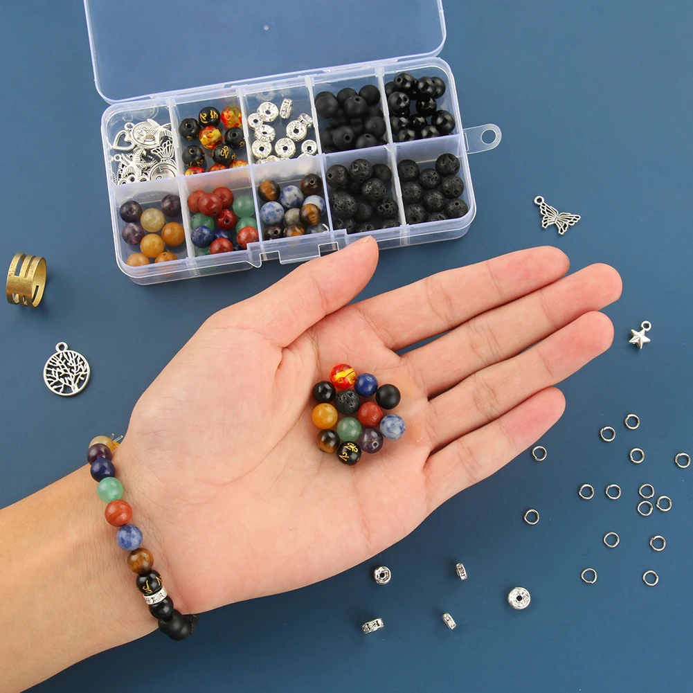 Набор из шариков и камней, шнурков и круглых вставок с эффектом рассеянного эфирного масла для самостоятельного изготовления ювелирных изделий