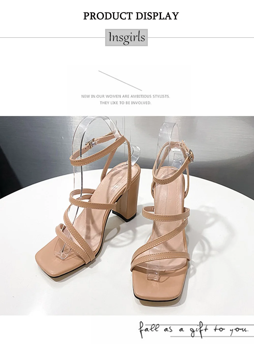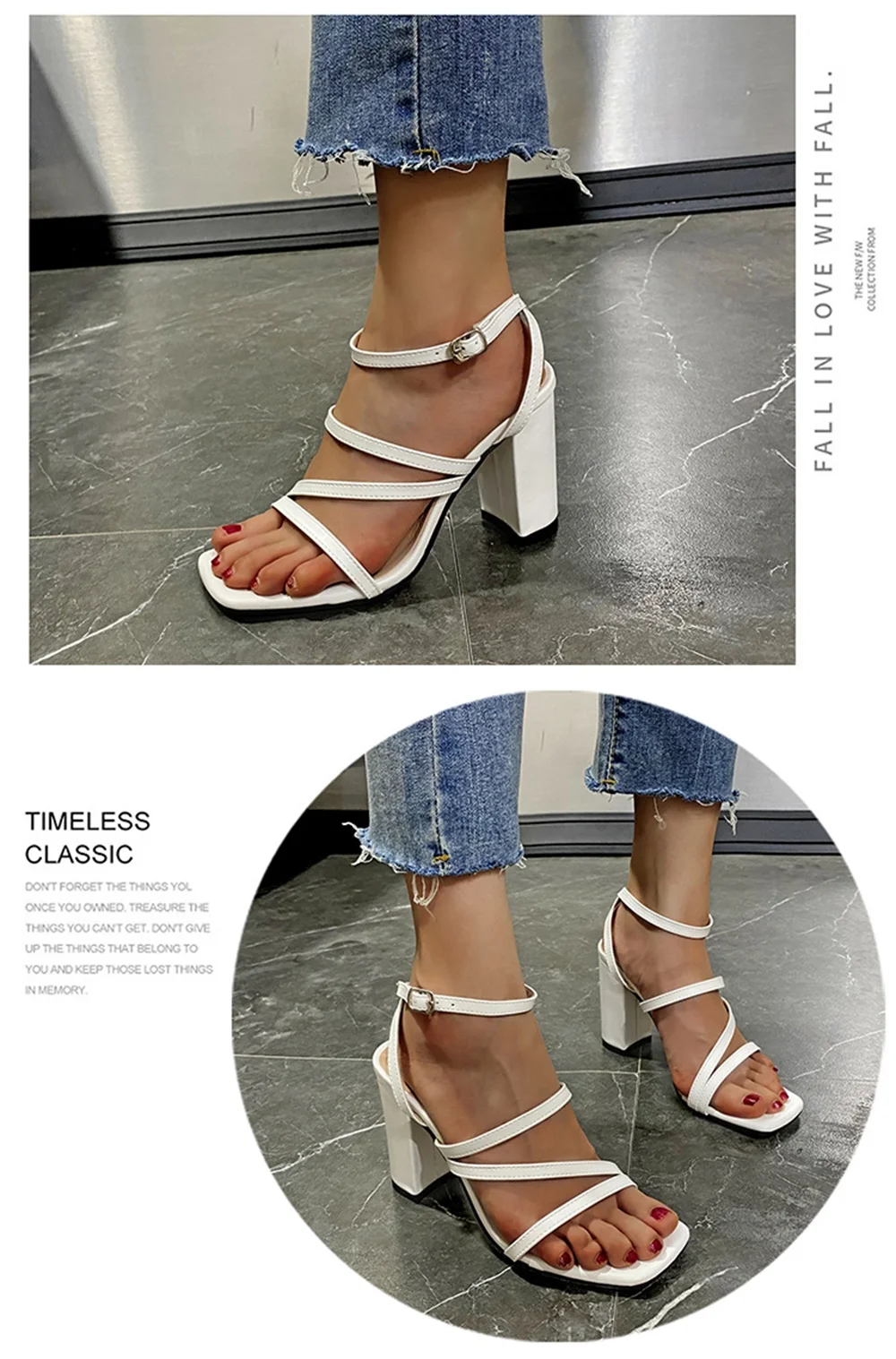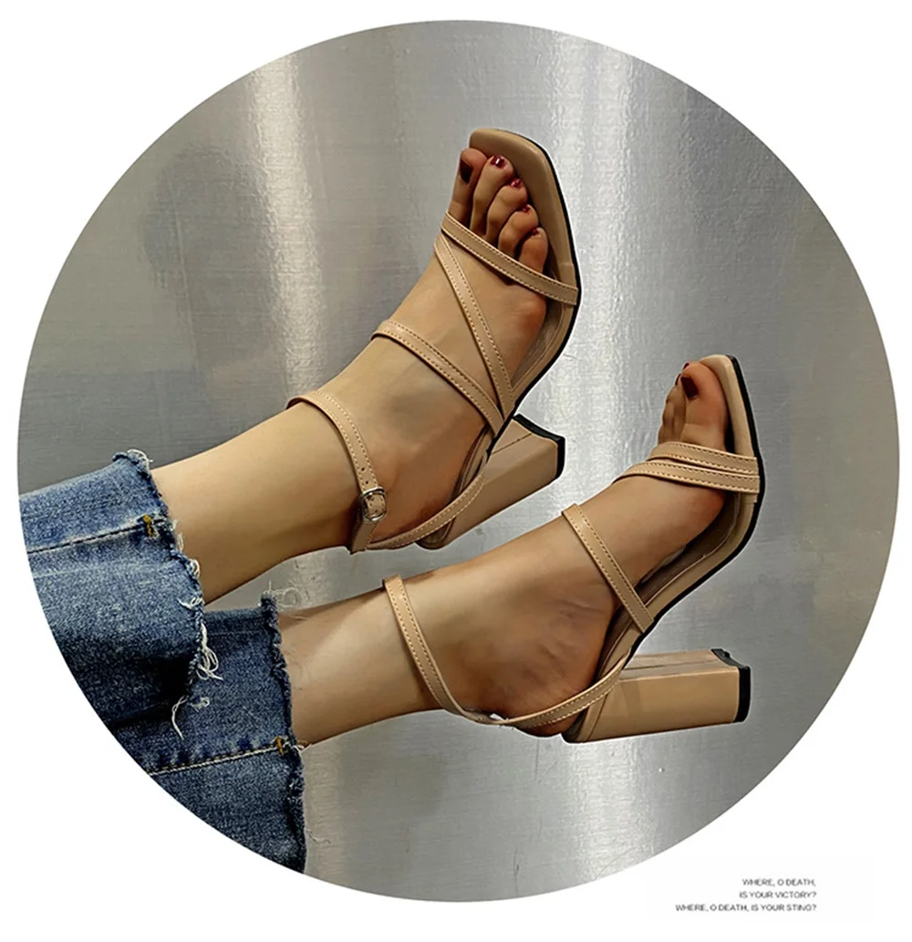 Летние женские босоножки на высоком каблуке, новинка 2022, модные однотонные женские босоножки с ремешком на пятке и открытым носком и пряжкой, Классические офисные вечерние туфли-лодочки 35-43