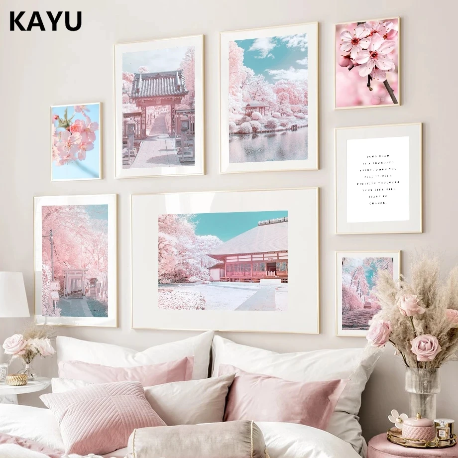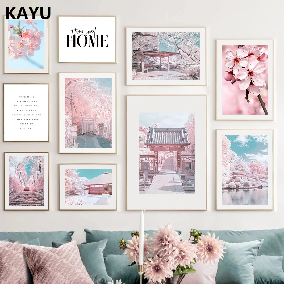 Скандинавский природный пейзаж, холст, живопись, розовый, сладкий ц...
