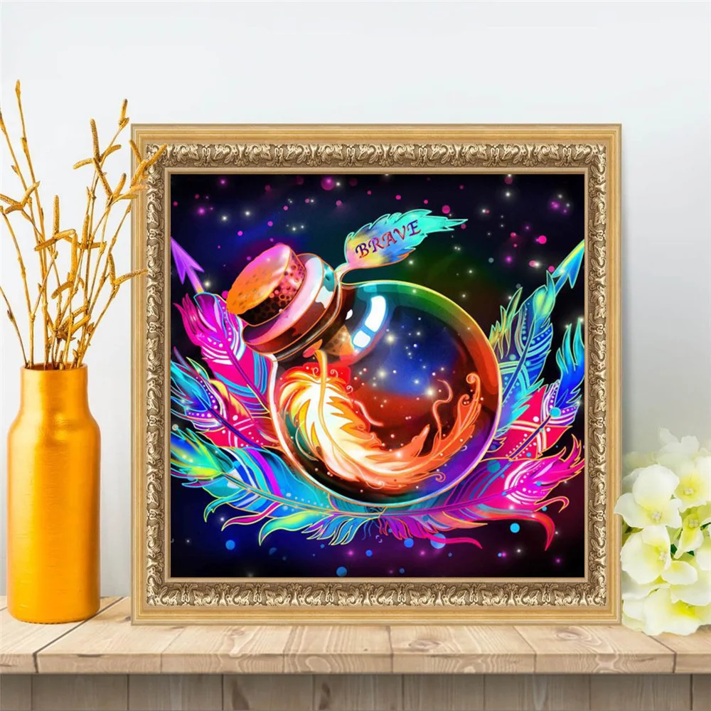 Алмазная 5d-картина HUACAN сделай сам, в виде бутылки желаний, фантастическая вышивка из страз, мозаика из перьев, декоративные картины