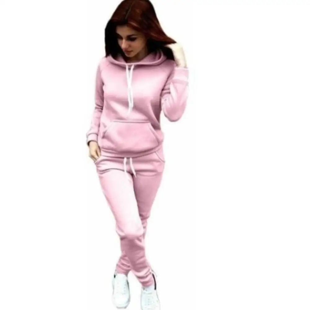 Женский спортивный костюм из 2 предметов, флисовый костюм из свитшота и спортивных брюк, повседневный однотонный спортивный костюм для бега и тренировок, весна-осень