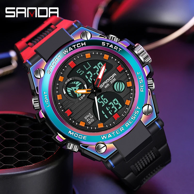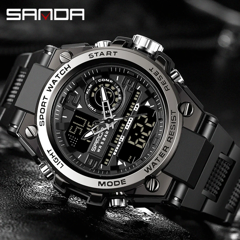 Часы наручные SANDA мужские водонепроницаемые, спортивные брендовые, с двойным дисплеем