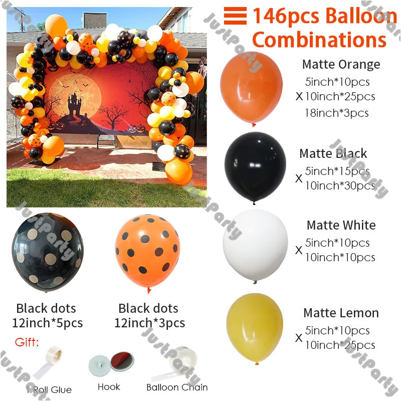146 шт. Матовый оранжевый черный шар гирлянда арочный комплект украшение для Хэллоуина лимон детский декор на день рождения белый триллер праздничные атрибуты