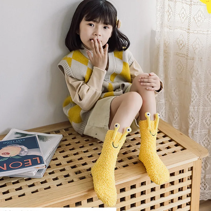 Зимние детские носки, однотонные шерстяные носки для детей, утеплен...